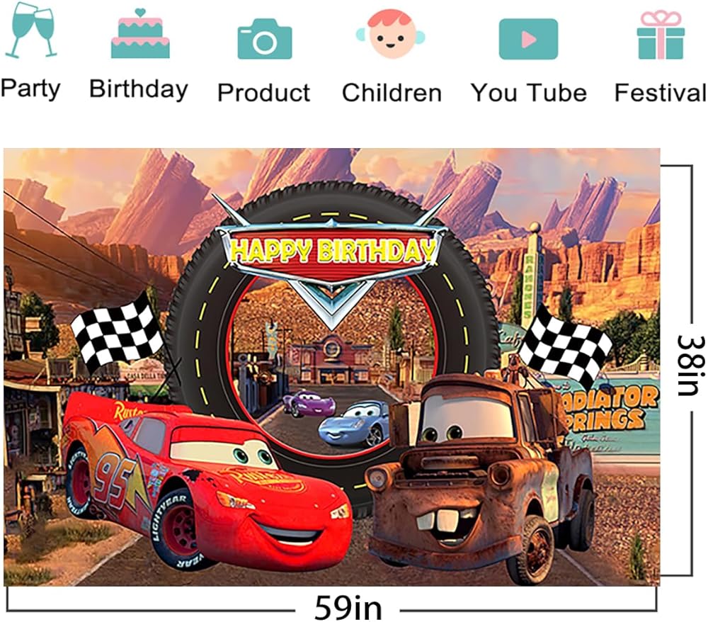 خلفية سيارات سباق حمراء لمستلزمات حفلات عيد ميلاد سعيد، لافتة لايتنينج ماكوين لتزيين الحفلات، خلفية صور مقاس 59 × 38 انش