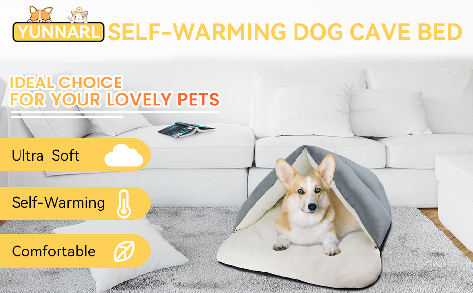 Comfortable Material Both the inside and outside of the pet bed are high-quality fiber fabrics, warm and comfortable, radiate heat to your pet. The cozy plush interior offers a sense of comfort and security. The cave shaped dog bed creates a sense of comfort and security during kitty naps.