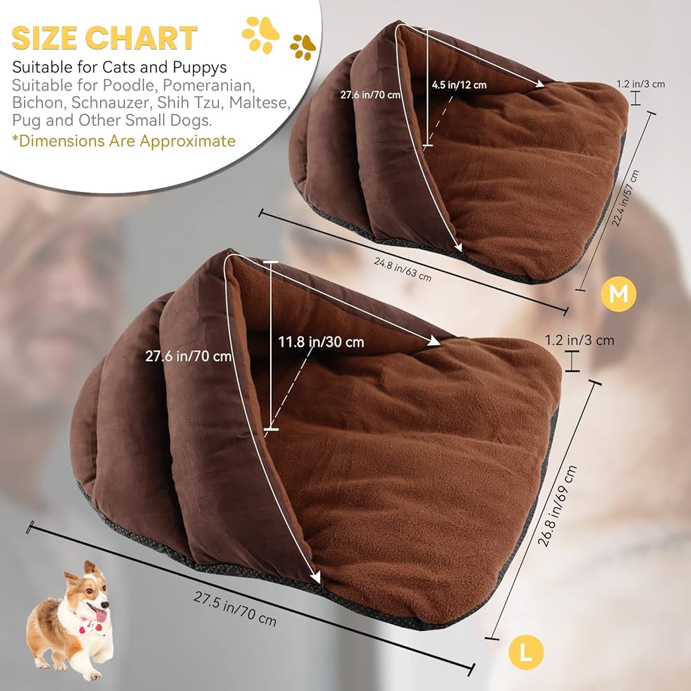 Weight Range - Cave bed size 25 x 20 x 3 inches, suitable for cats, puppies, small and medium dogs under 25 pounds. This medium dog bed is lightweight and portable, easy to take with you while traveling.