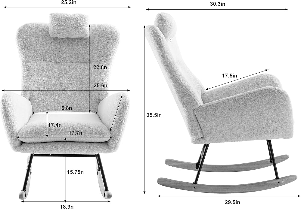 ☁ لمسة تشبه السحابة: مغطى بقماش ناعم ومسامي وغير قابل للوبر ومملوء بإسفنجة عالية الكثافة، يمكن للكرسي الهزاز المنزلق الحديث أن يمنحك لمسة لطيفة وراحة قصوى في الجلوس. يوفر عمق المقعد الكبير المبطن جيدًا وعرض كرسي التمريض هذا مساحة جلوس واسعة.