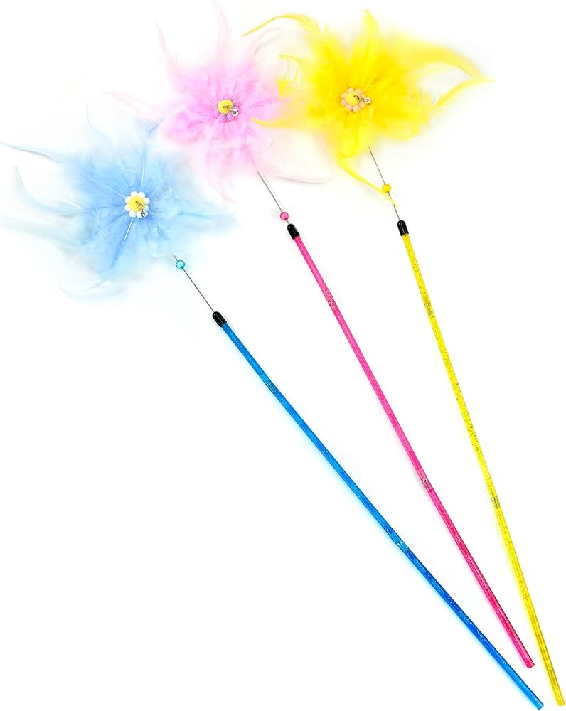 CHIWAVA 3 Pack 31" Combination Feather Cat Toy Wand Sunflowers with Bell Kitten Interactive Cat Teaser Assorted Color
