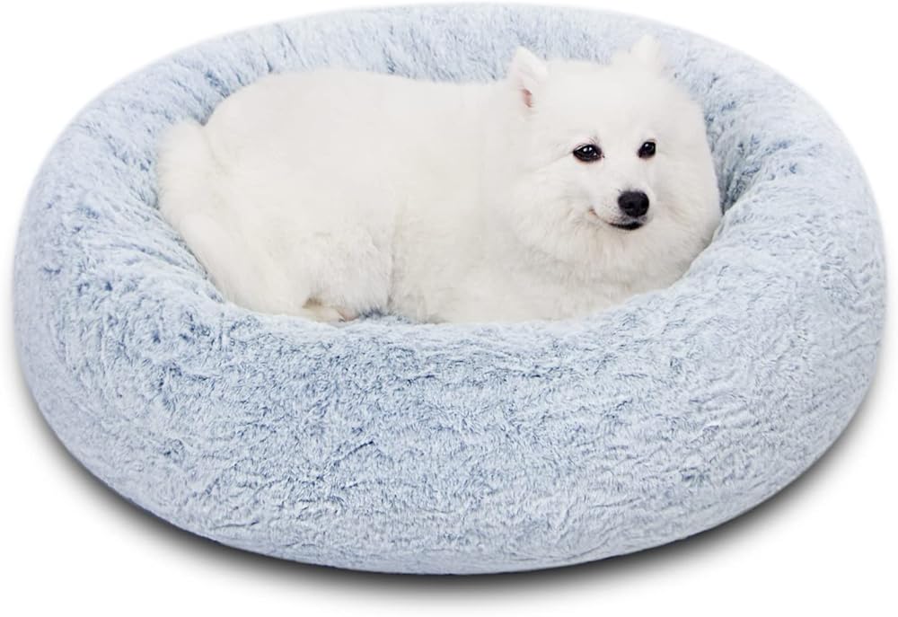 سرير N&V متوسط الحجم للكلاب مصنوع من إسفنج لتقويم العظام، قاعدة إسفنجية لتقويم العظام تساعد حيوانك الأليف على التخلص من آلام المفاصل والعضلات، غطاء من الفرو الصناعي قابل للغسل، مستدير، متوسط، أزرق رمادي