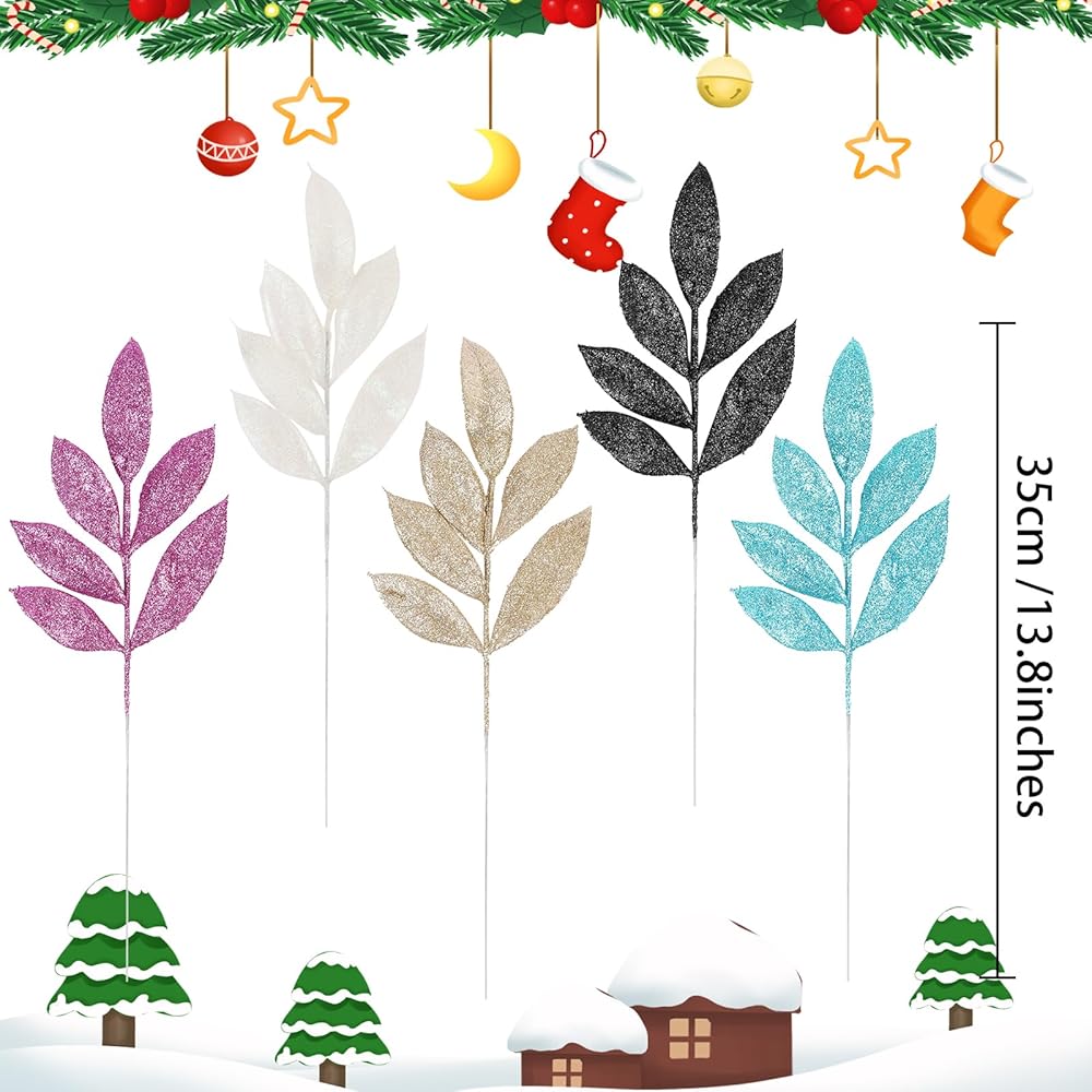 【Package Information】Each package contains 20 pieces artificial glitter leaves stems. This Christmas ornaments are about 13.8 inches long.