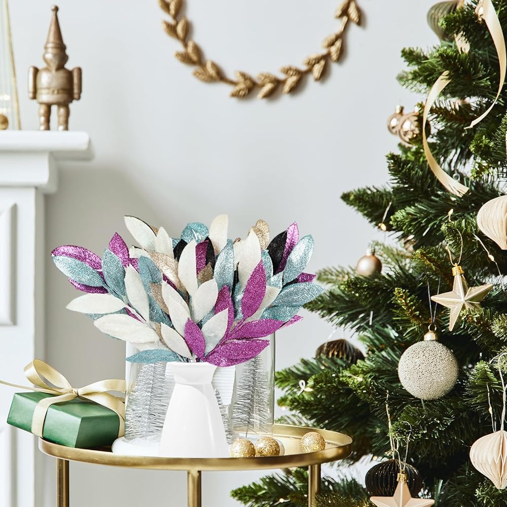【Glitter Leaf Stems】The Christmas tree picks and sprays are covered with glitter powder, nice to blend in with your surroundings and other Christmas tree decorations.