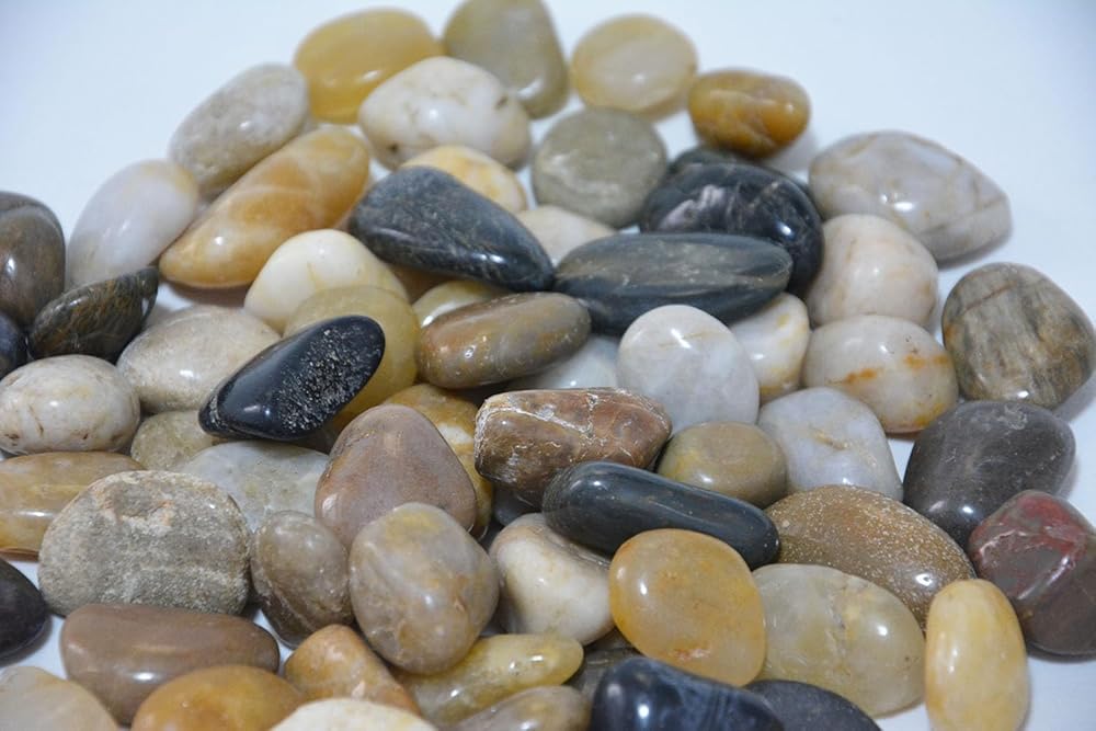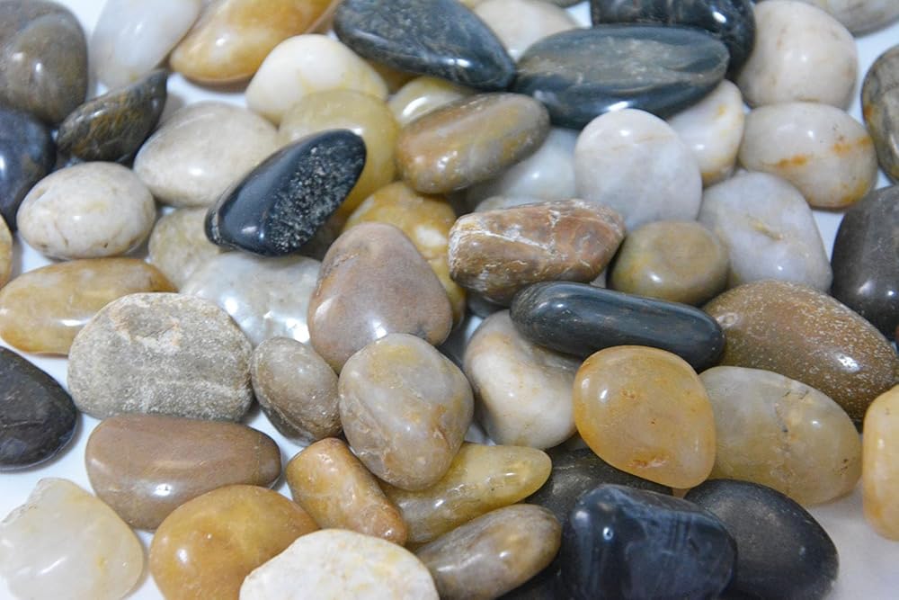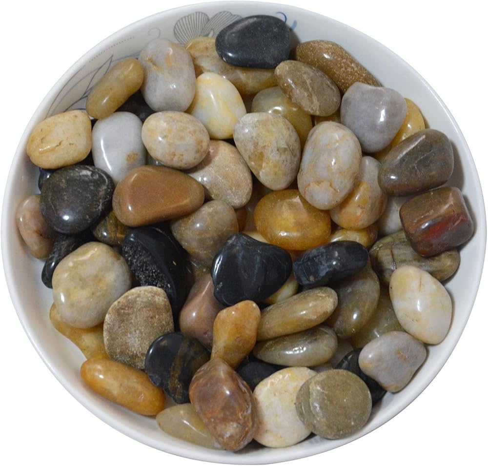 Natural Polished Pebbles:This river rocks are natural lightly polished for smooth effect, comes in a variety of natural colors, Resists fading for long-lasting beauty. The color of this river rock is natural so it may include a variety of different shades of browns, black and whites rocks.(rocks are natural and as a result some may be broken or out of shape, thick or thin, oval or round) - River Rock
