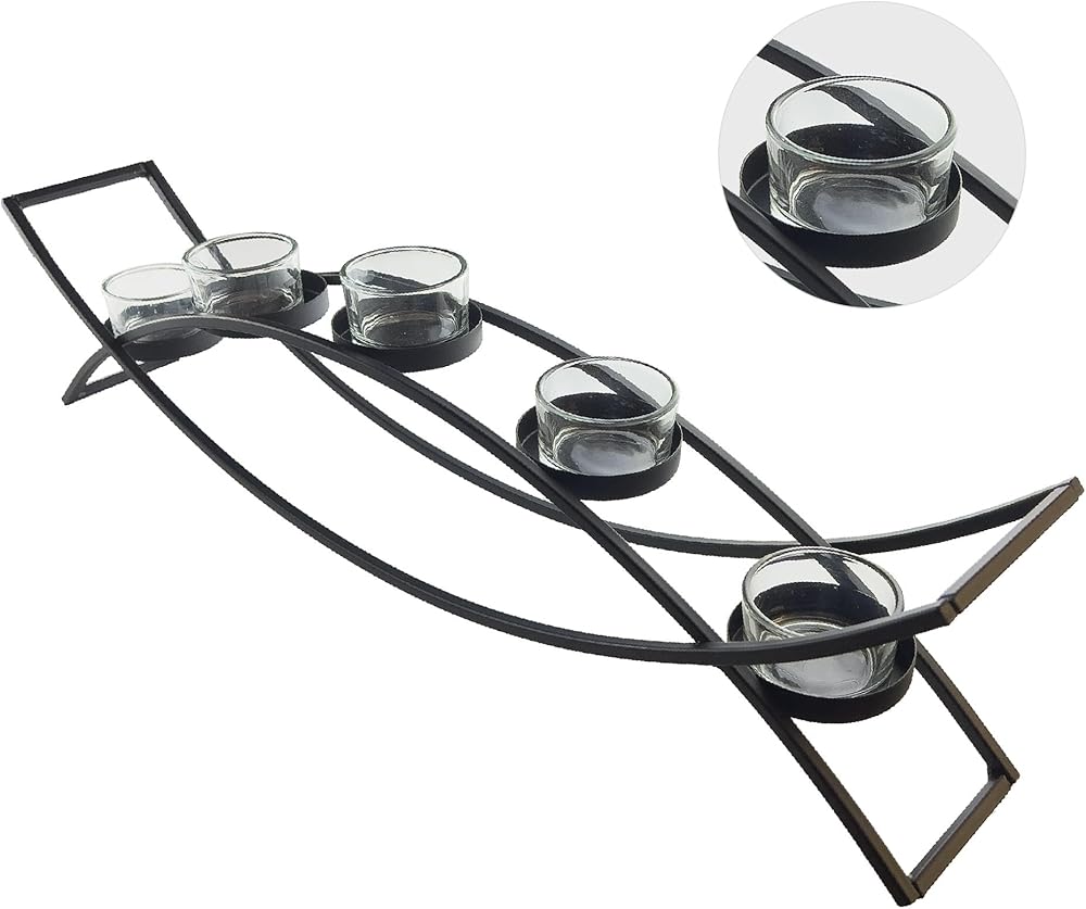 Stylish Design - Adds the perfect finishing touch to any space with a sleek, stylish design that never goes out of style. Made of a black Iron and clear 5 glass cups design, this centerpiece is a perfect match for any room decor, enhancing the aesthetic appeal of your space. Easy to Clean - The glass cups can be easily removed for cleaning, making maintenance a breeze.
