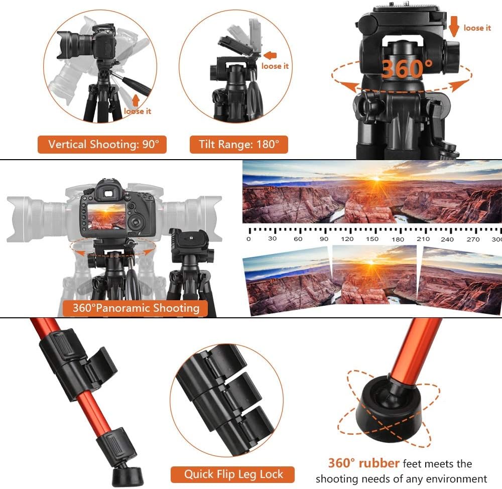 360 Degree Flexible Head: 360 Degree 3 way head containing 90 degree vertical and 180 degree horizontal angle; Suitable for various scenes as Landscape/Portrait/Dynamic/Macro photography/Studio/Concert /Vlogging