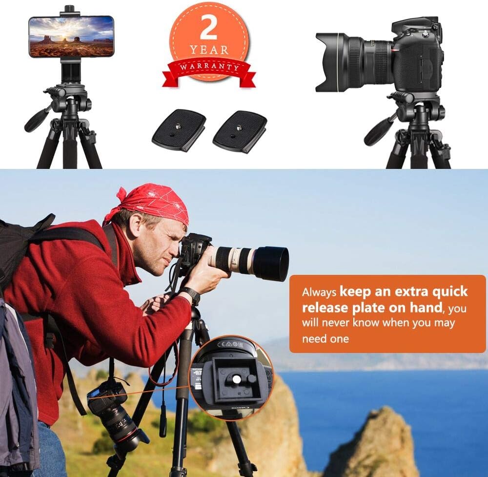 Accessories: One more Quick Release Plate for easy change of camera or phone; 1/4 Screw is suitable for various DSLR or mirrorless cameras; Phone folder can extend to 3.5 inches, adapting to most mobile phones or smartphones