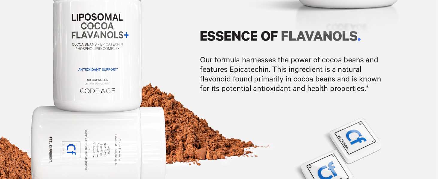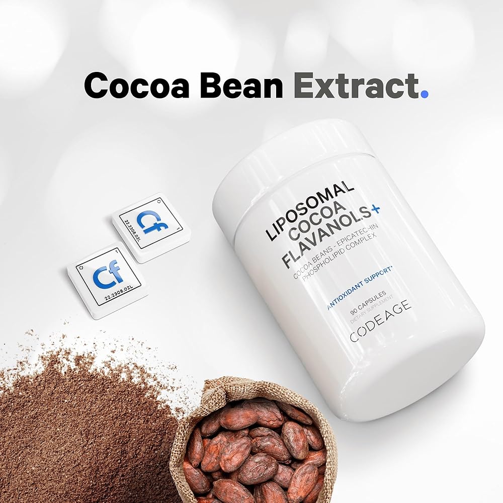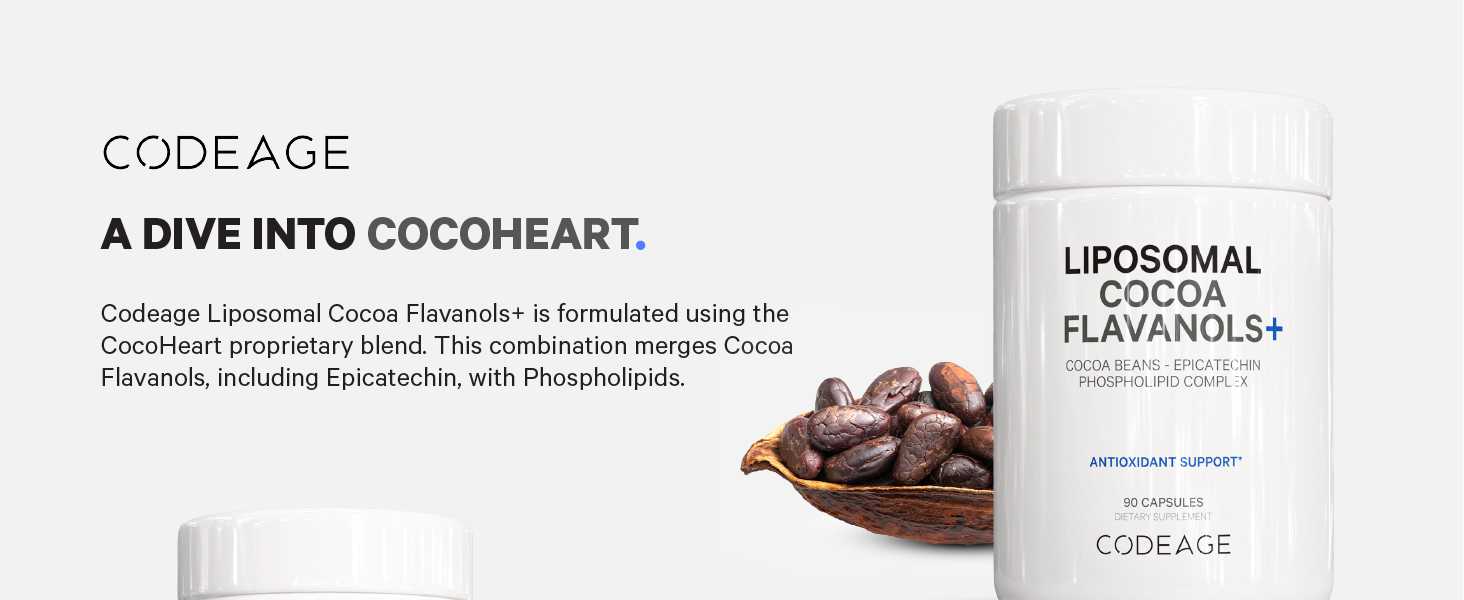 يقدم Codeage Liposomal Cocoa Flavanols+ مكملاً شاملاً من Cocoa Flavanols يسلط الضوء على مزيج CocoHeart الخاص - المدعم بـ Cocoa Flavanols وEpicatechin. فلافانول الكاكاو عبارة عن مركبات طبيعية موجودة في حبوب الكاكاو، وهي معروفة بخصائصها المضادة للأكسدة والصحة.*