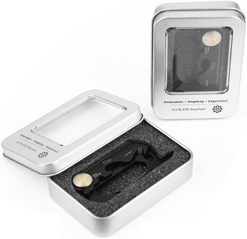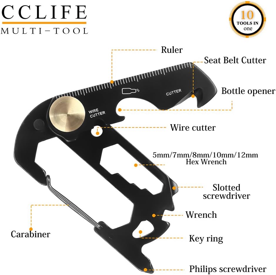 سي سي لايف سلسلة مفاتيح متعددة الوظائف من اي دي سي، اداة جيب تكتيكية للبقاء على قيد الحياة، مشبك حلقي متعدد الاغراض من الستانلس ستيل مع فتاحة زجاجات، مفتاح ربط، مفك براغي، إلخ. طلاء اسود