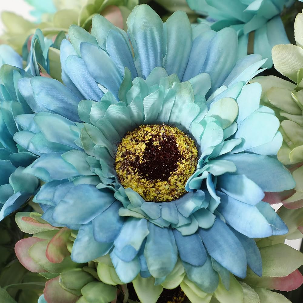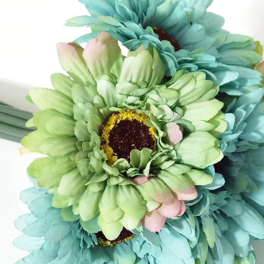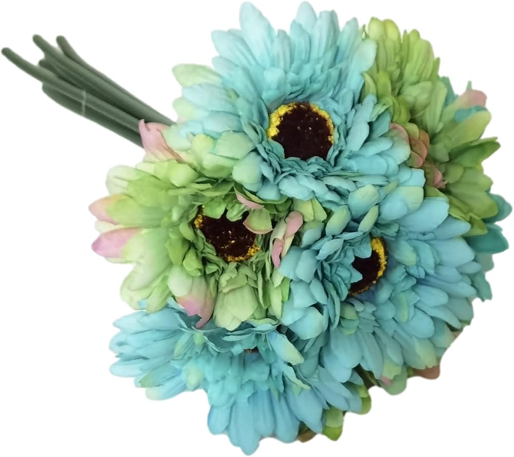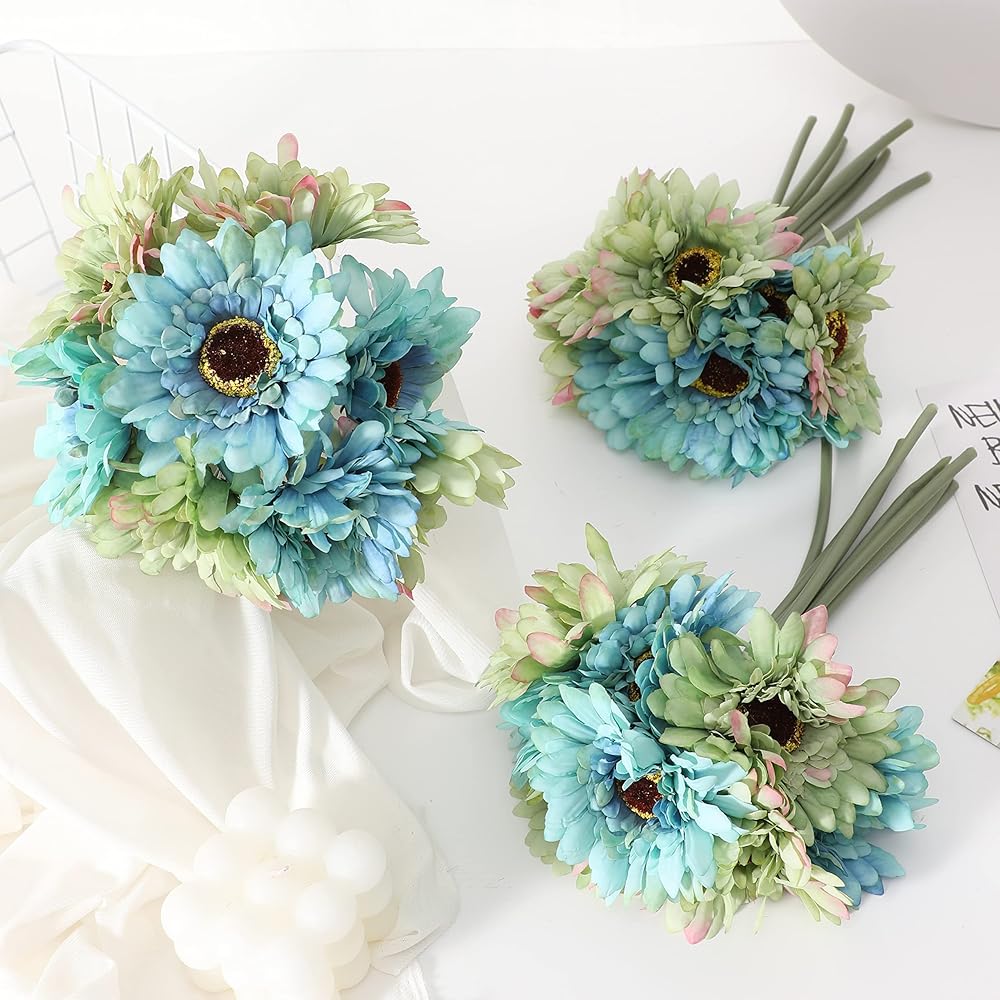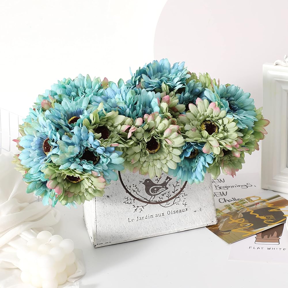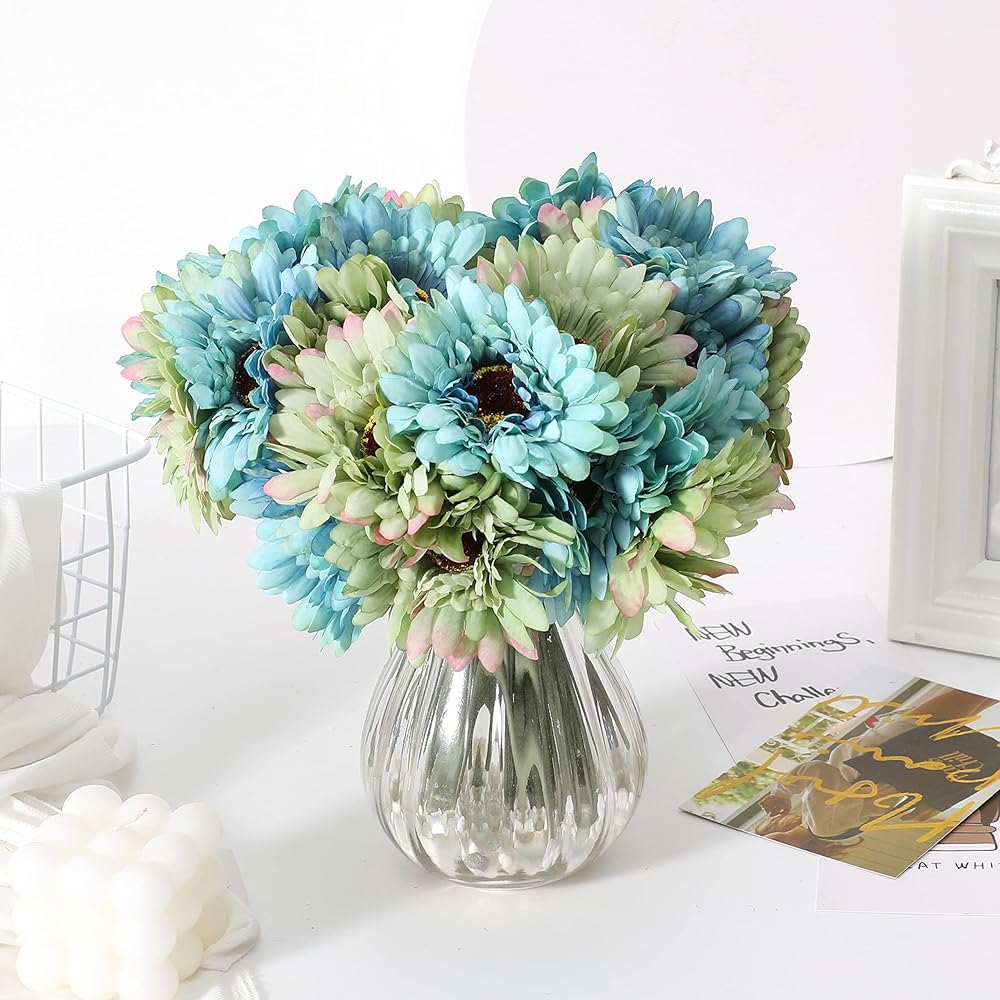الجودة: تحتوي كل وحدة على مجموعتين (16 سيقان)، باقة زهور الأقحوان هذه ذات جودة عالية، ذات مظهر طبيعي وألوان زاهية. تحتوي كل مجموعة على 8 سيقان من الزهور إجمالاً، 4 زرقاء و4 خضراء. ملحوظة: المزهرية غير متضمنة!