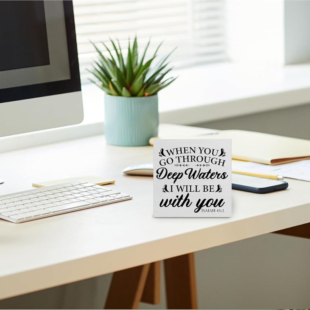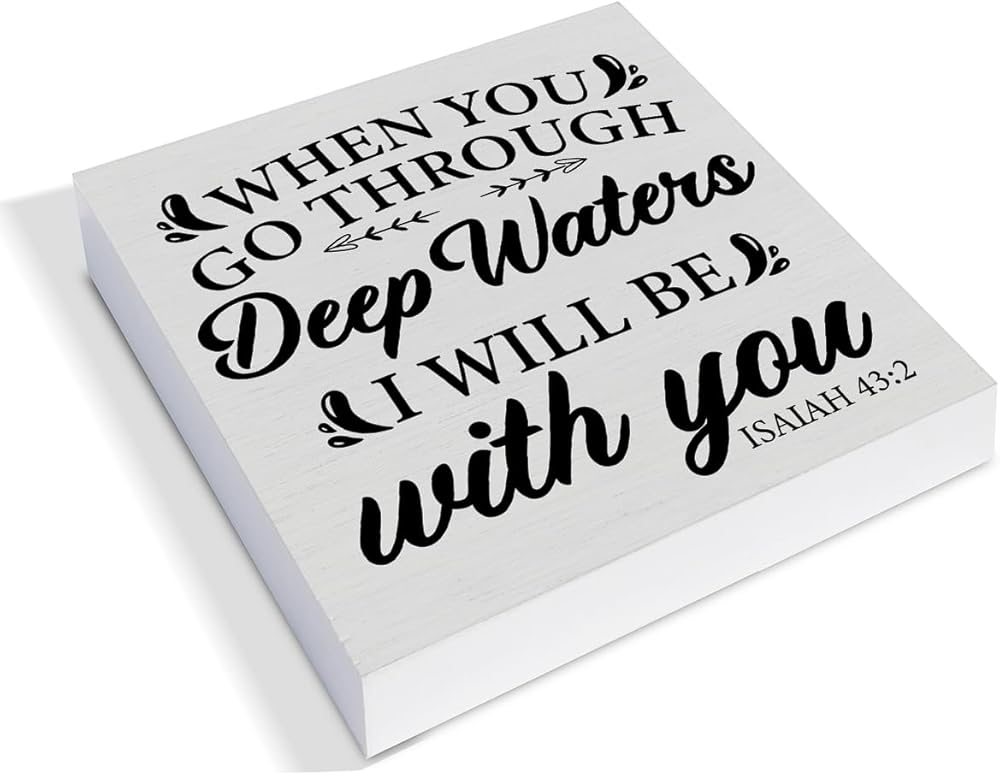 اقتباس ملهم من الكتاب المقدس آية صندوق خشبي علامة ديكور مكتب مسيحي، ريفي إشعياء 43: 2 الكتاب المقدس كتلة خشبية تسجيل المنزل والمكتب الديني سطح الطاولة ديكور مكتب الرف، 5 × 5 بوصات