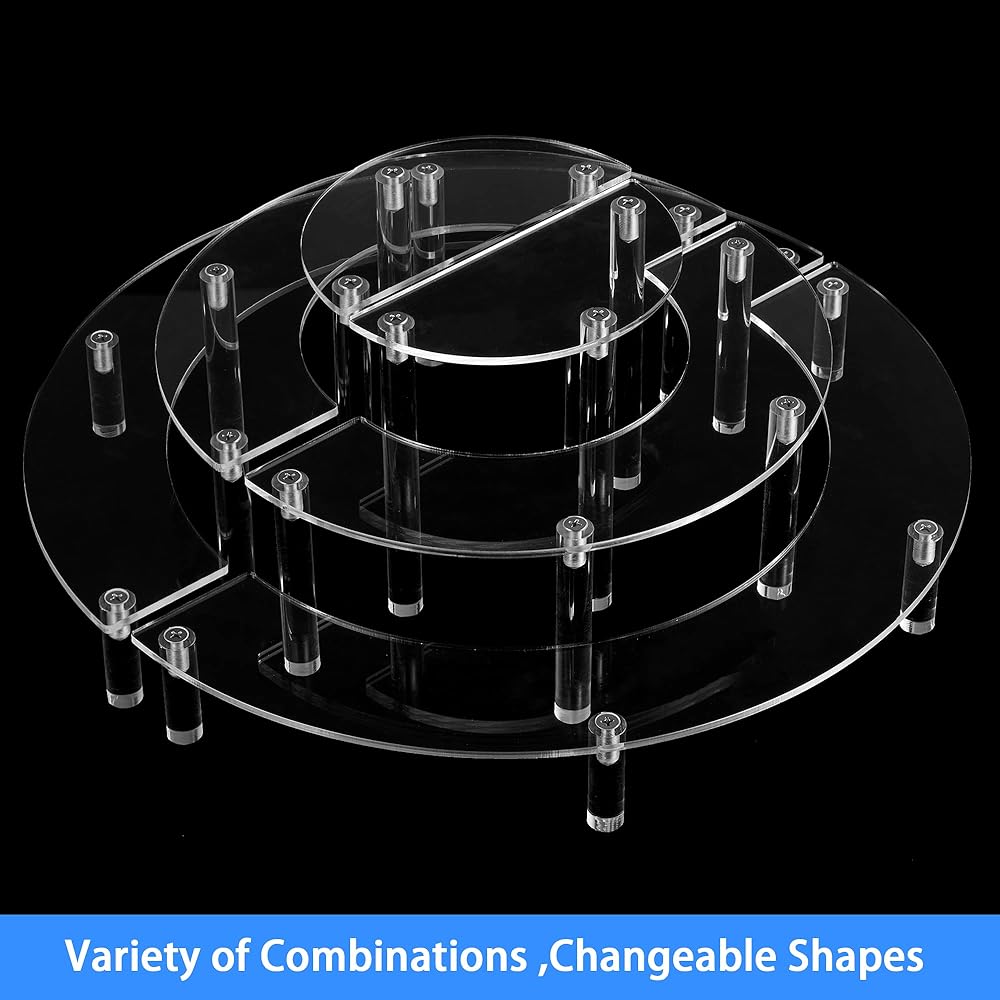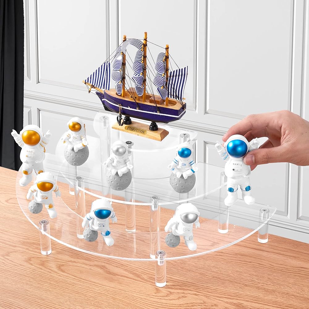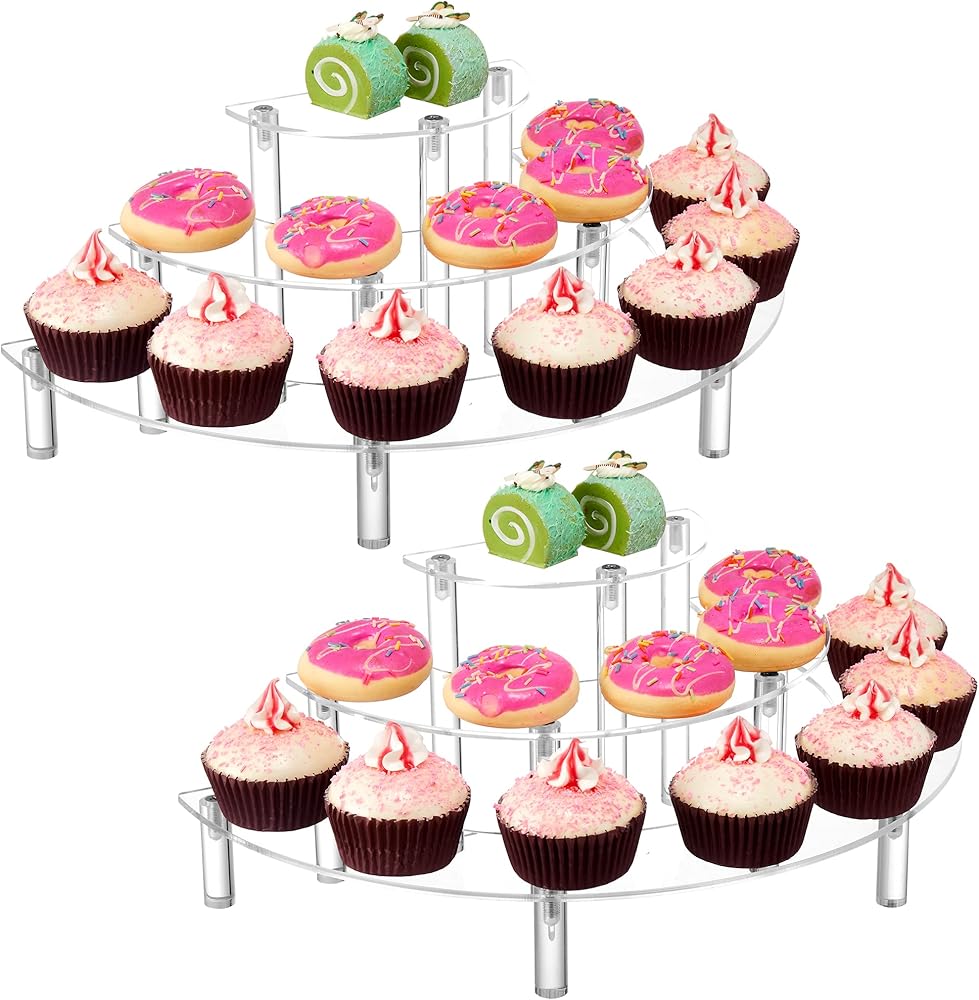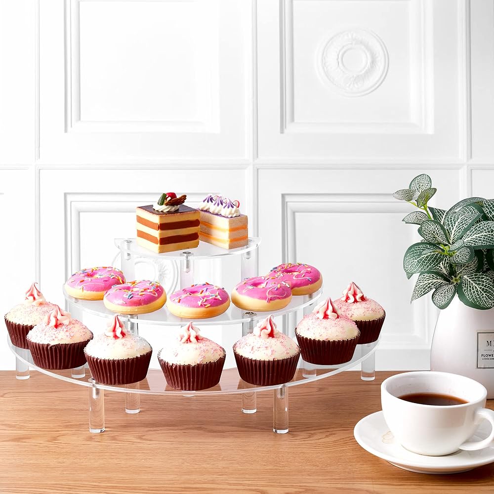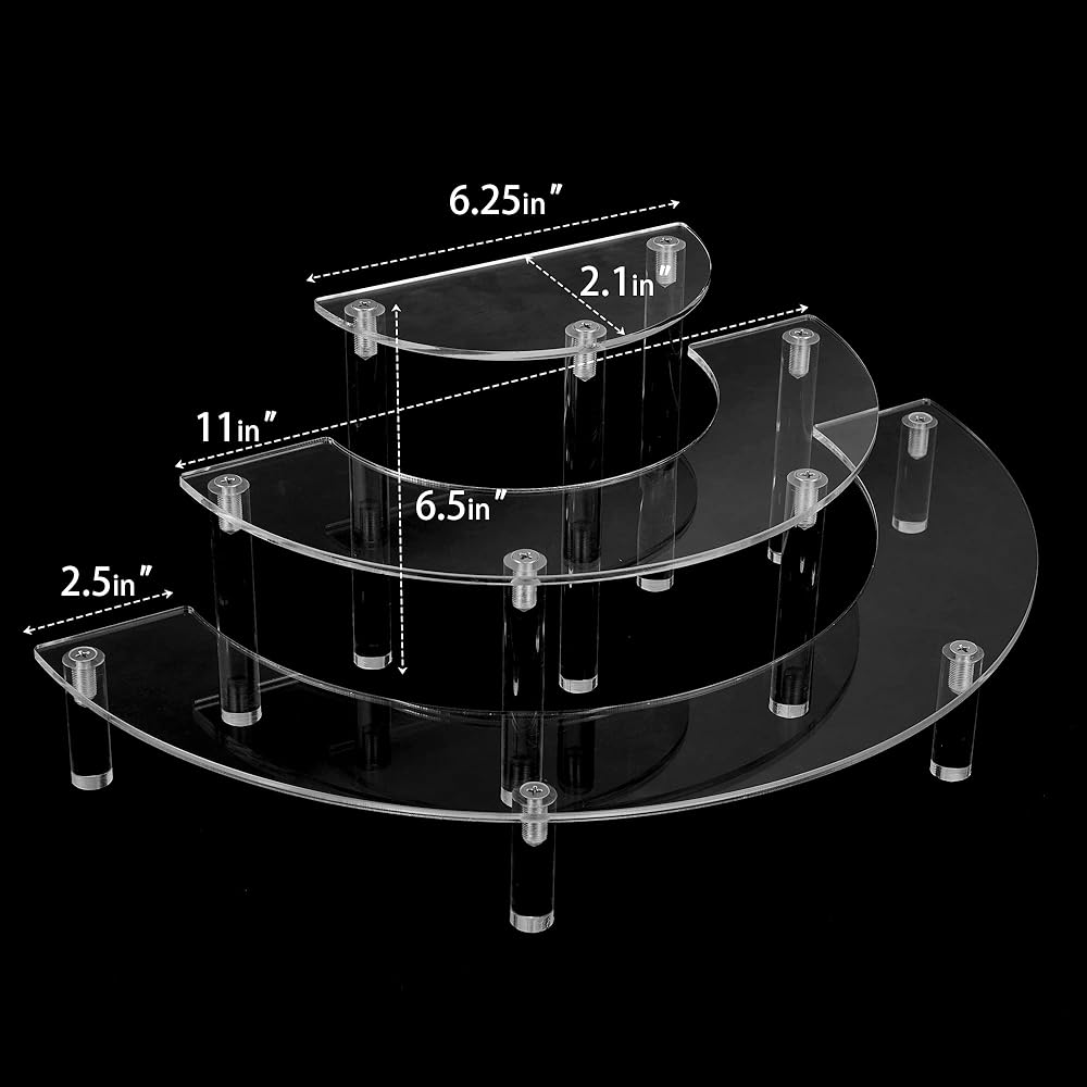 أرفف حامل عرض أكريليك، حامل كب كيك مكون من قطعتين، حامل شفاف من 3 طبقات لشخصيات البوب ​​ديسبالي، حامل كعكة نصف قمر للحفلات، الزفاف، أعياد الميلاد،