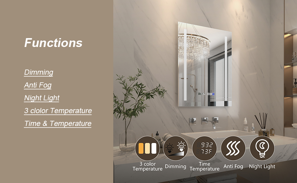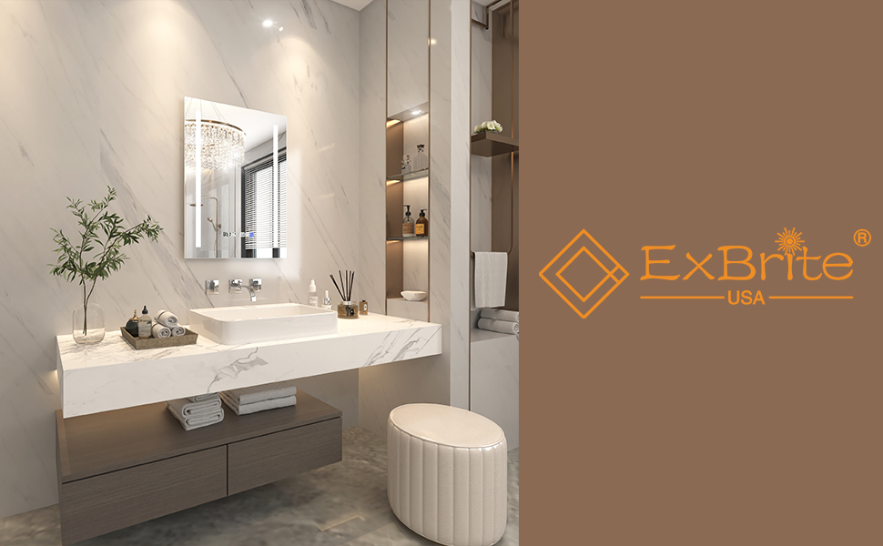 【خافتة للضوء و3 درجات حرارة ألوان】- السطوع قابل للتعتيم لمرآة الحمام المضيئة من إكسبرايت. ببساطة اضغط لفترة طويلة على مفتاح اللمس لضبط السطوع. مرآة الحمام LED يمكن أن تكون خافتة للضوء. 3 درجات حرارة لون للخيار، الضوء الدافئ (3000 ك)، الضوء الطبيعي (4000 ك)، والضوء الأبيض (6000 ك).