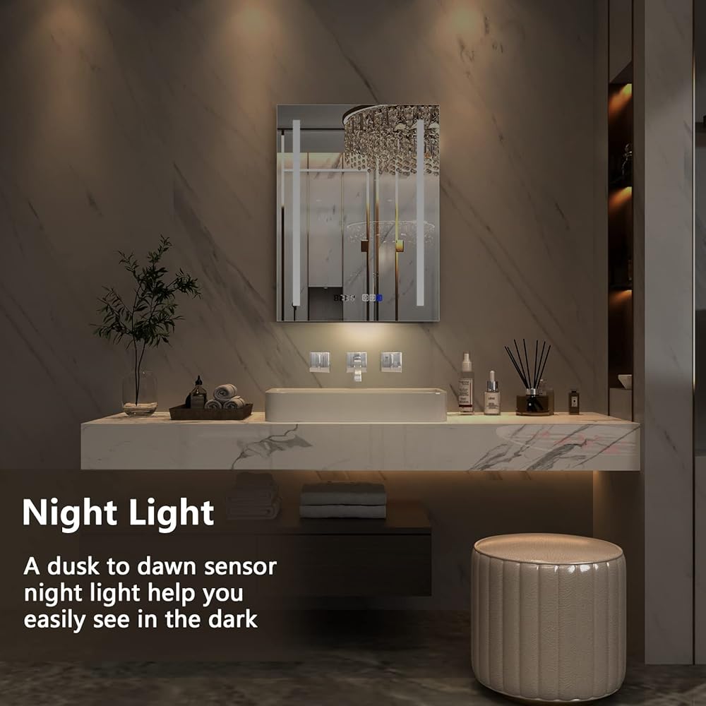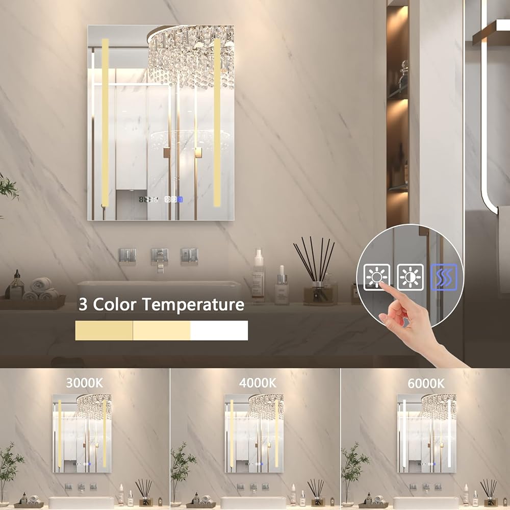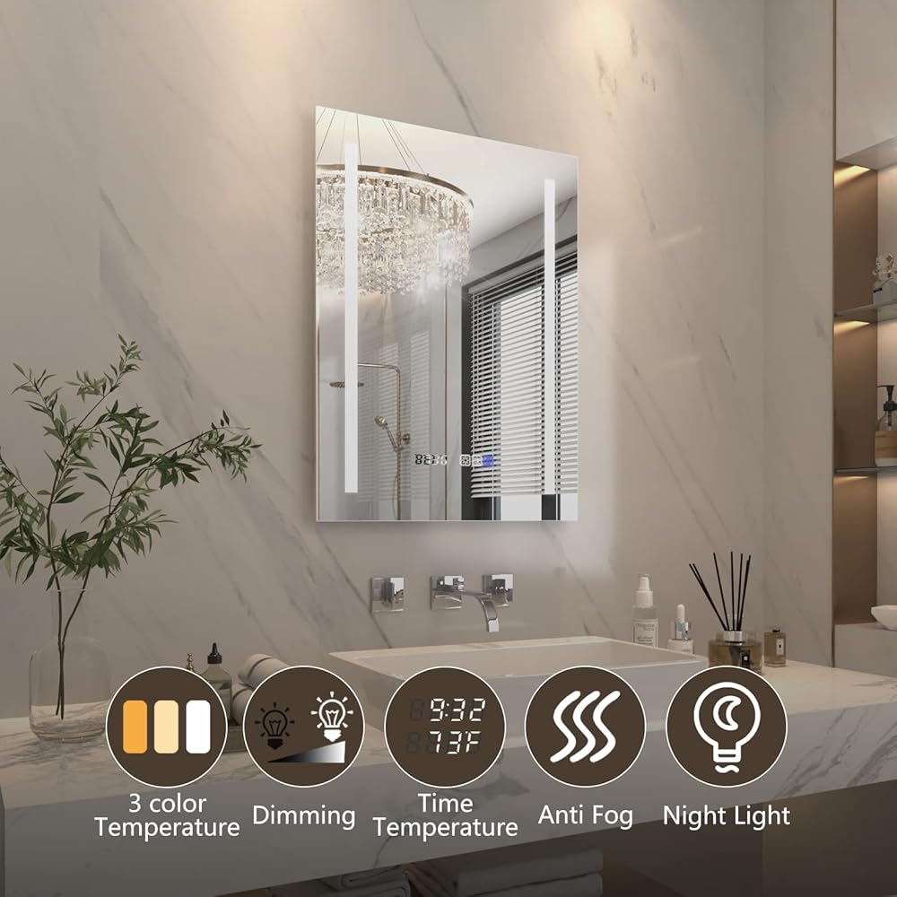 مرآة حائط للحمام بإضاءة LED مقاس 32 × 24 بوصة من ExBrite، مضادة للضباب، قابلة للتعتيم، الوقت ودرجة الحرارة، ضوء ليلي، لون قابل للتعديل، 90+ CRI، مقاومة للماء IP44، مثبتة على الحائط