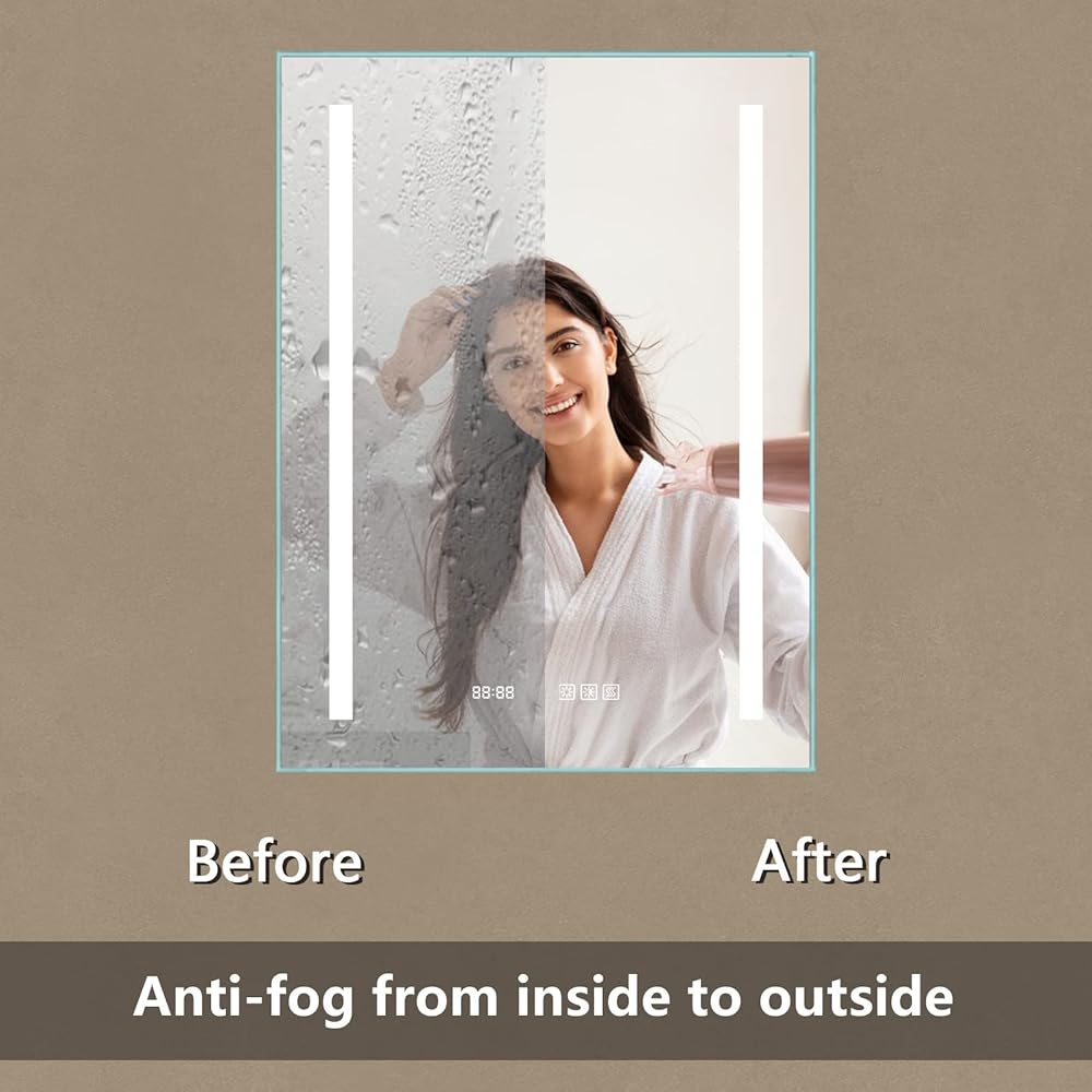 【ميزة إزالة الضباب ووظيفة الذاكرة】- مرآة حمام مضاءة مع وظيفة إزالة الضباب، لا داعي للقلق بشأن مسح المرآة للأسفل بعد الاستحمام. مرآة الحمام المضيئة نظيفة بالفعل. يبدأ مكافحة الضباب بسرعة. تساعد وظيفة الذاكرة على تذكر الإعداد الأخير الذي استخدمته، المرآة الذكية، المنزل الذكي.