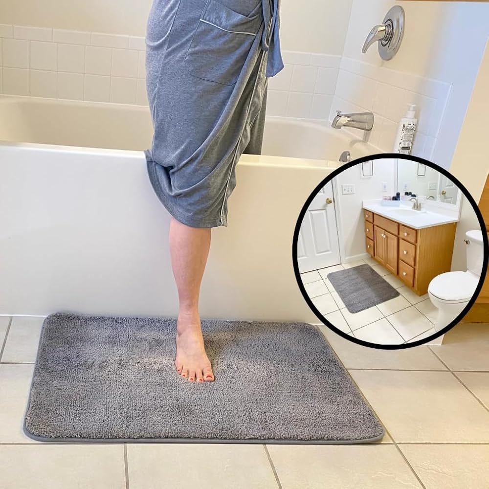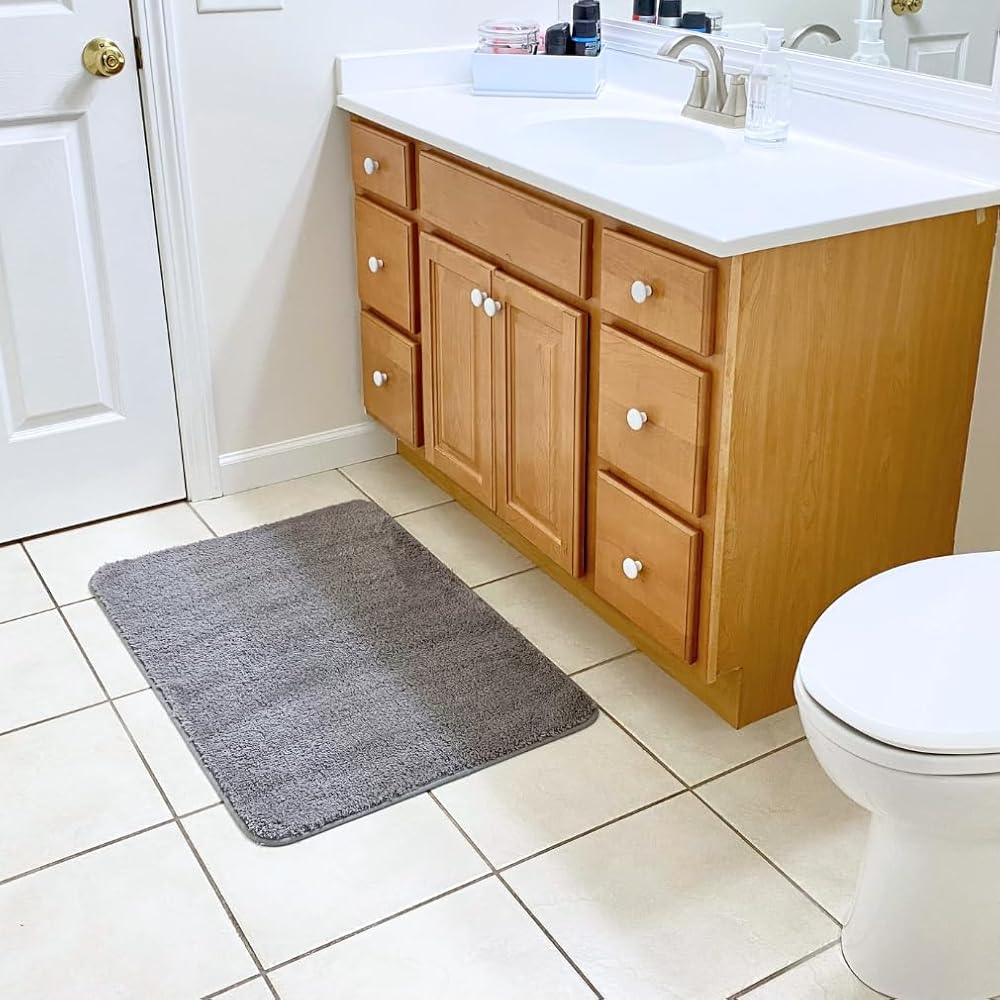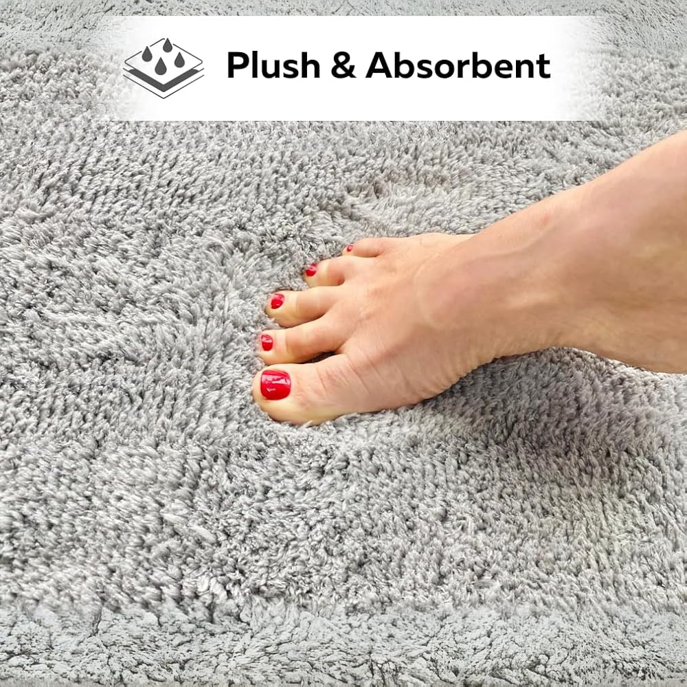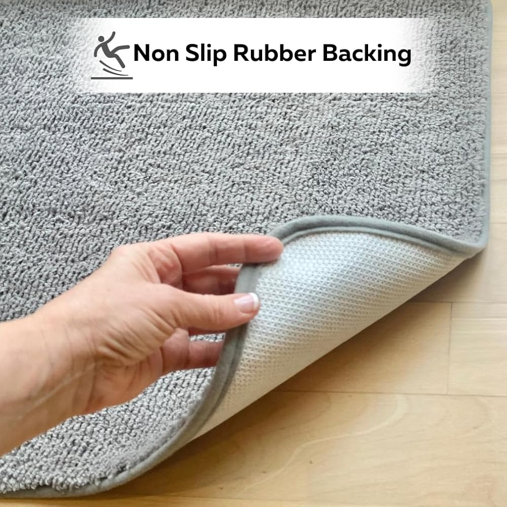 [حجم مثالي] يبلغ مقاس سجادة الحمام الجميلة هذه حوالي 88.9 سم طولًا × 60.96 سم عرضًا. سوف يمتزج اللون الرمادي الدافئ مع معظم الديكورات