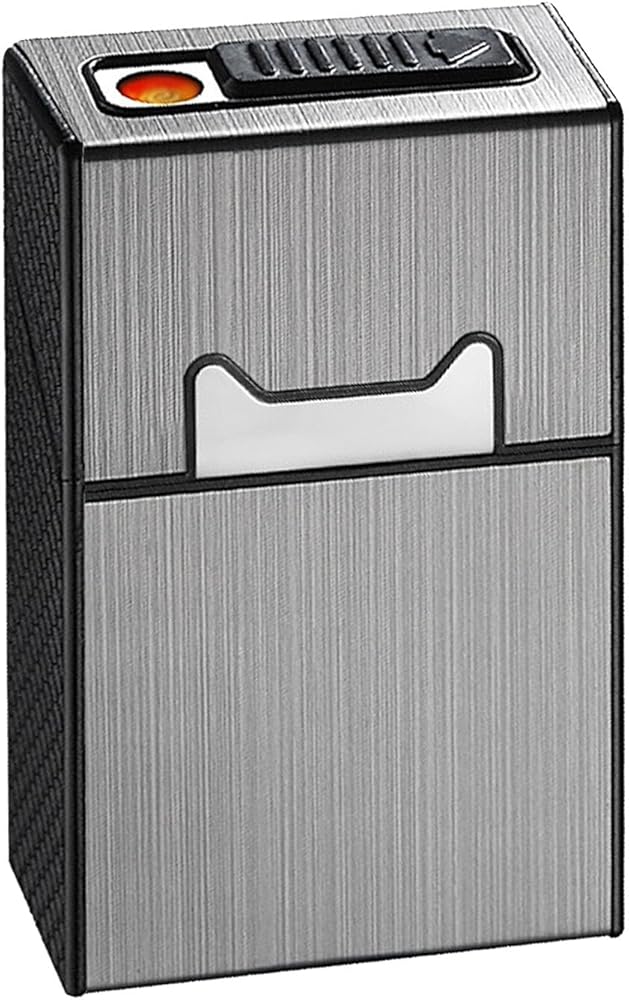 مع ولاعة كهربائية: الجزء العلوي من علبة السجائر هو ولاعة صغيرة يمكن شحنها من خلال كابل USB. يمكن لعلبة السجائر حل مشكلة تخزين السجائر وإضاءتها بسهولة. لا حاجة لحمل الولاعة.
