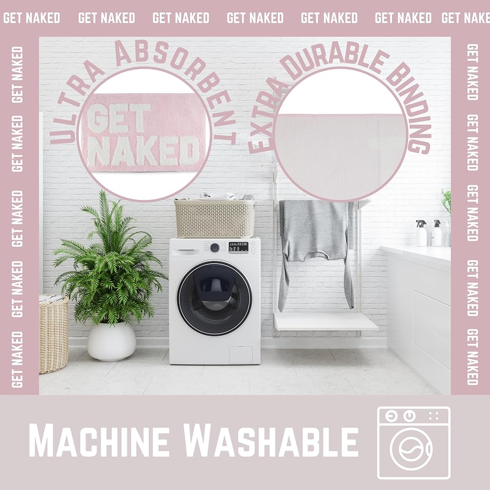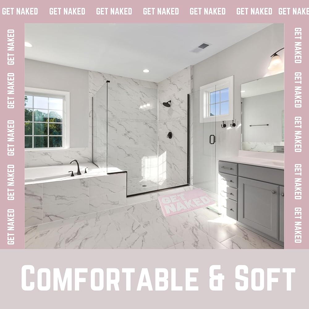 SRS67 سجادة حمام Get Naked - سجادة حمام لطيفة - سجادة حمام وردية - سجادة غير قابلة للانزلاق من الألياف الدقيقة الماصة - سجادة حمام قطيفة سميكة - سجادة حمام وردية قابلة للغسل
