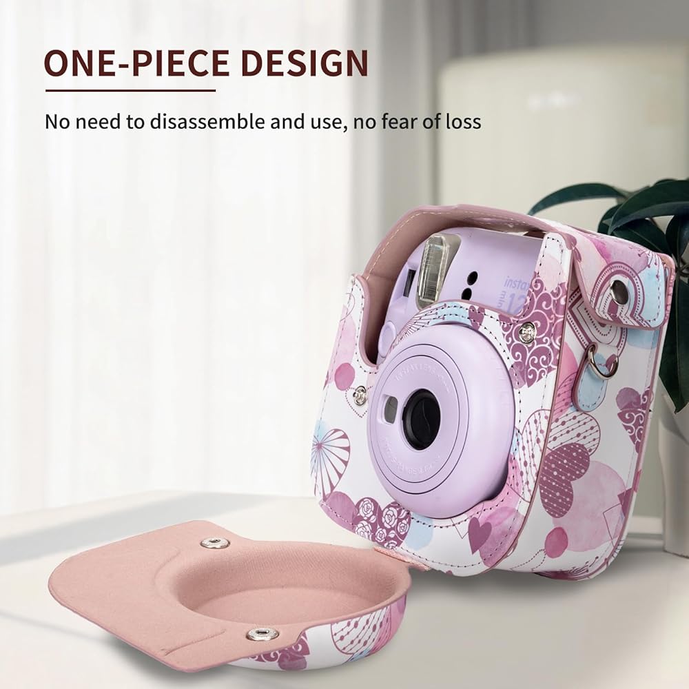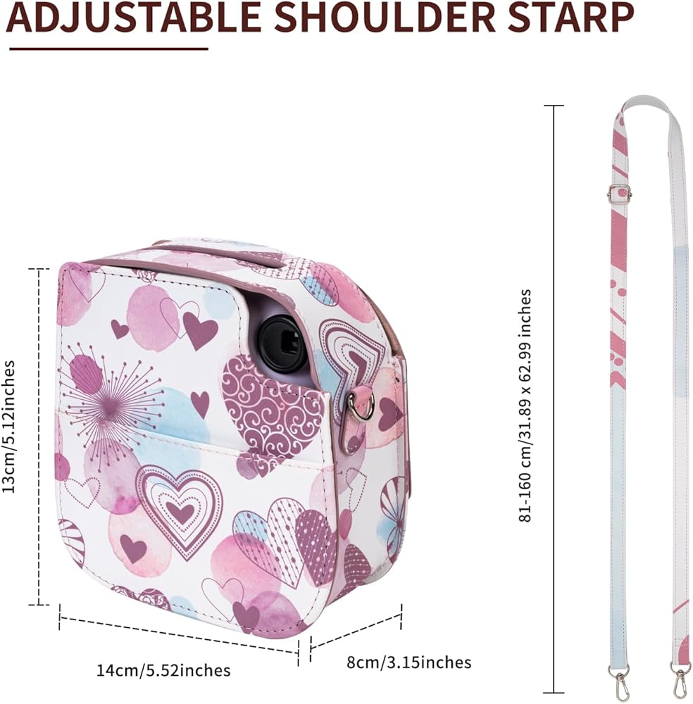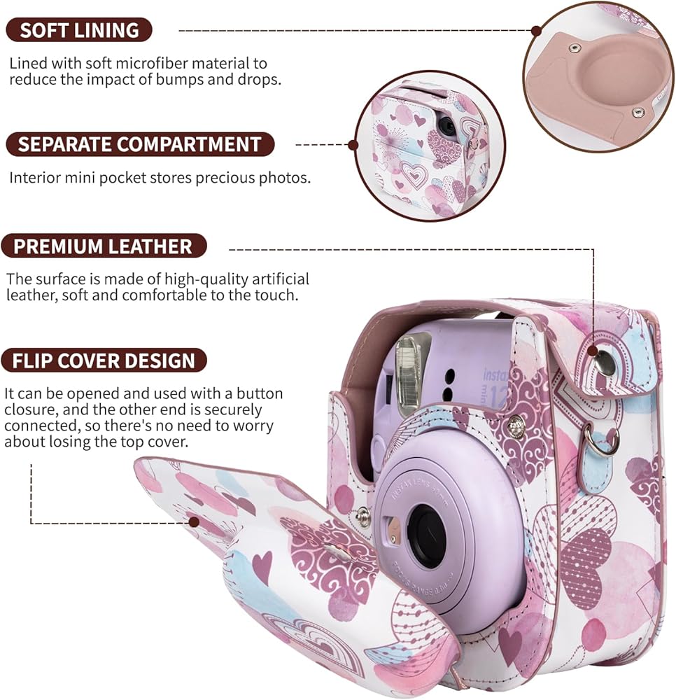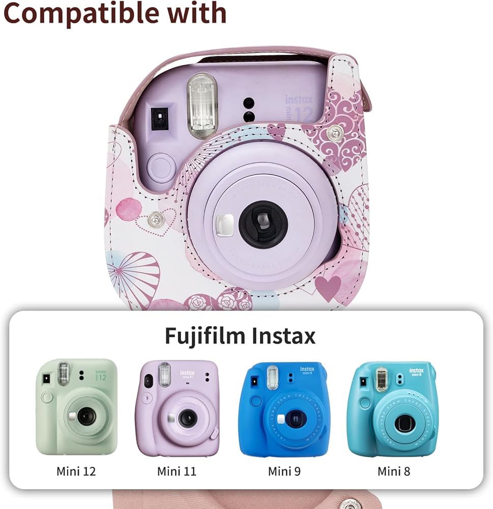 حافظة حماية ممتازة من مولشاين متوافقة مع كاميرا Fujifilm Instax Mini 12 11 9 8 الفورية، واقي تخزين محمول للسفر مع جيب للصور وحزام كتف قابل للتعديل (الحب)