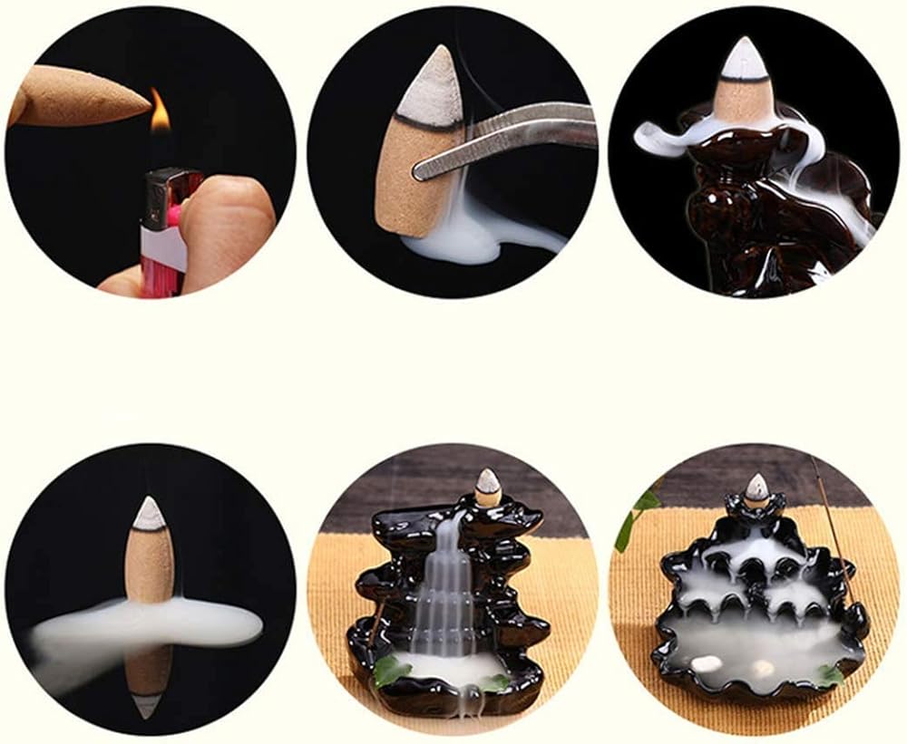 الاسترخاء: استمتع بلحظة هادئة وهادئة باستخدام أحد مخاريط البخور ذات التدفق الخلفي. تضيع في الدخان المنوم الذي يتدفق مثل شلال بطيء الحركة
