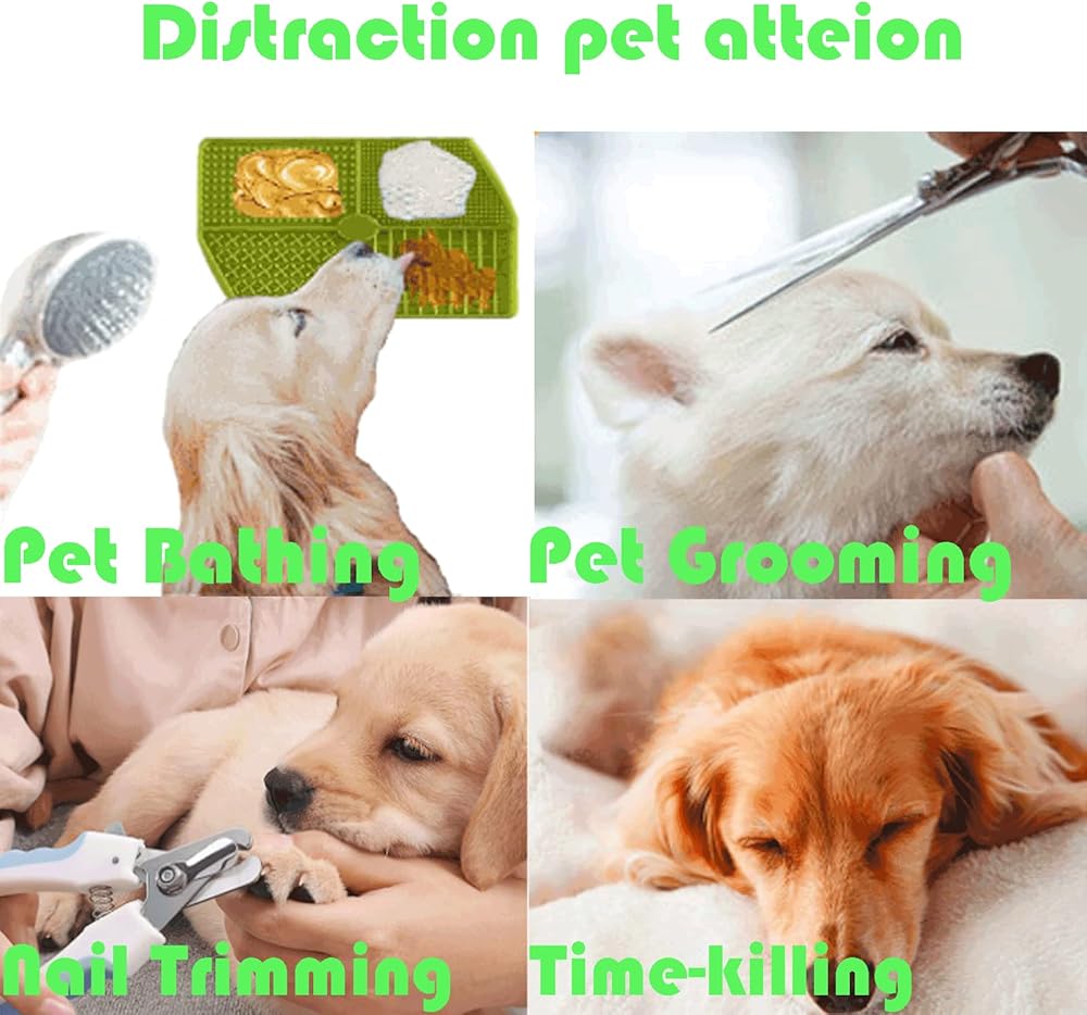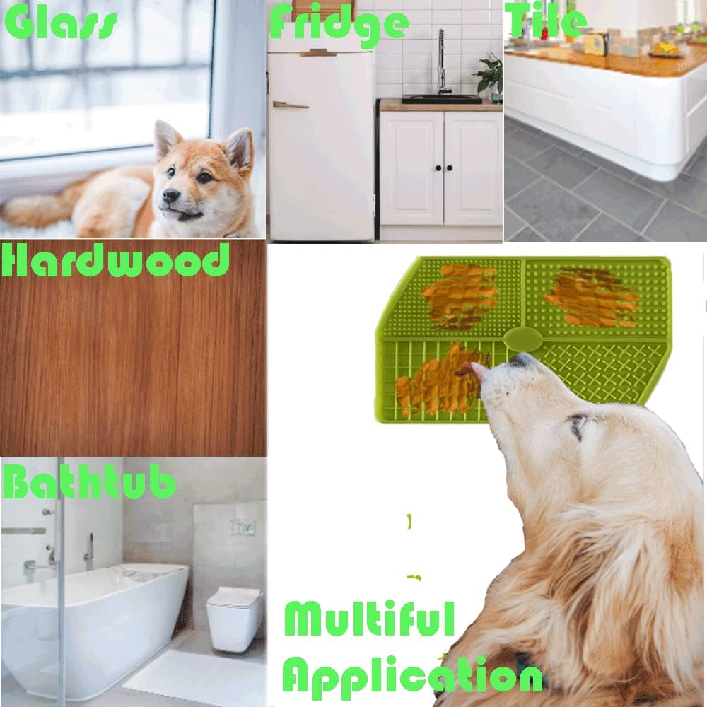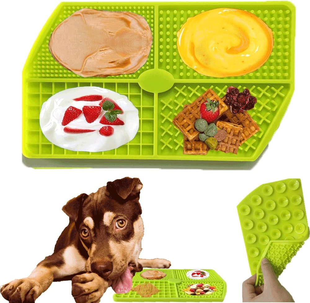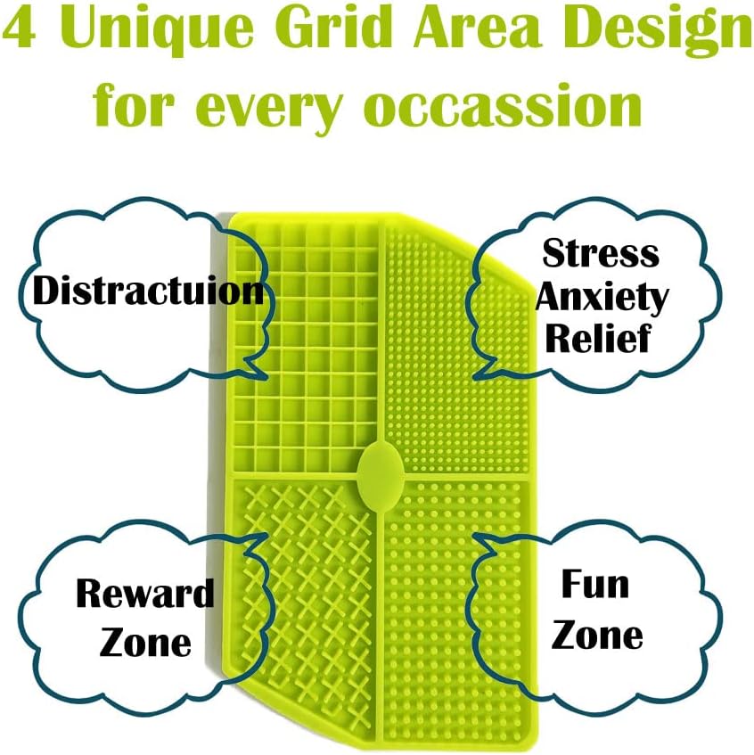Patented 4 Separate Unique Grid Dog Slow Feeder.4 different Areas Design for Training Rewards,Slow Feeder, Anxiety Stress Relief and Distraction to keep dog's busy for dog bathing and grooming. Besides, the uniquely textured quadrants can extend the feed time, slow your pet's eating speed and prolongs enjoyment.