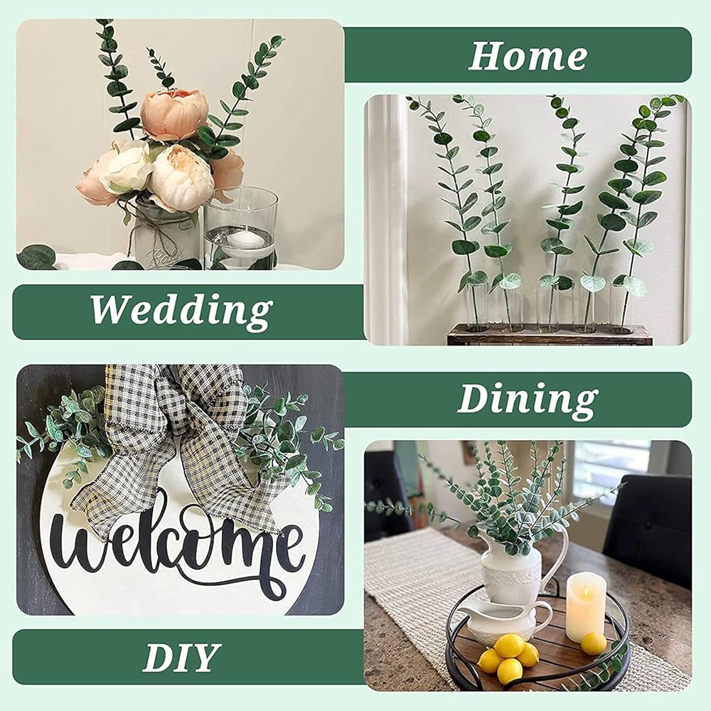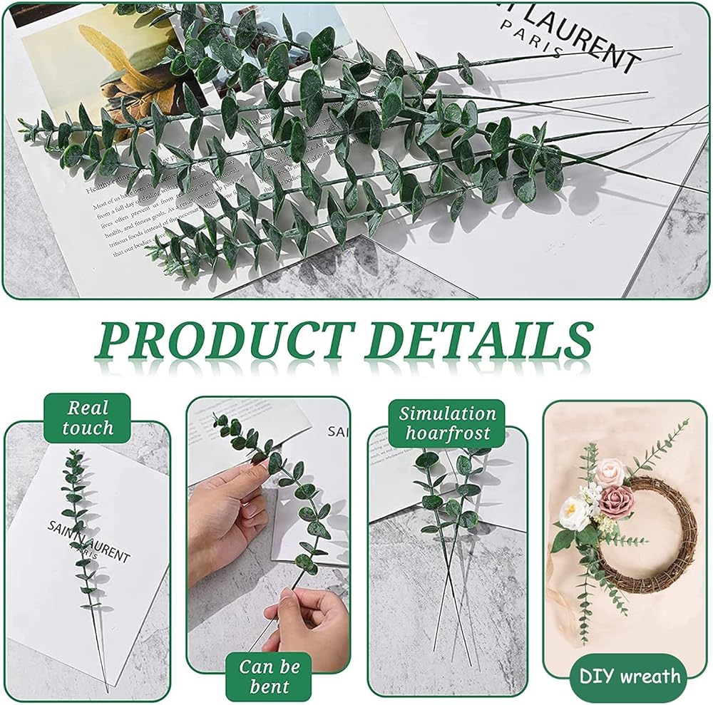 【مظهر واقعي ولمسة حقيقية】- أوراق الأوكالبتوس مغطاة بالصقيع لجعلها تبدو حقيقية. تتماشى مع بعض الزهور المزيفة الأخرى، اصنع قطعك المركزية الخاصة بك. تخلق جوًا رومانسيًا.