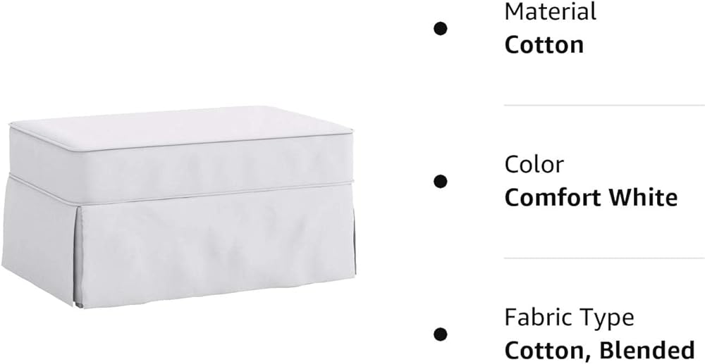 High quality cotton. It fits Pottery Barn's PB Comfort ottoman. We only use high quality cotton material for this footstool cover, and we run a number of tests to make sure that our cover fits well. The package includes ottoman cover only. Ottoman is not included!