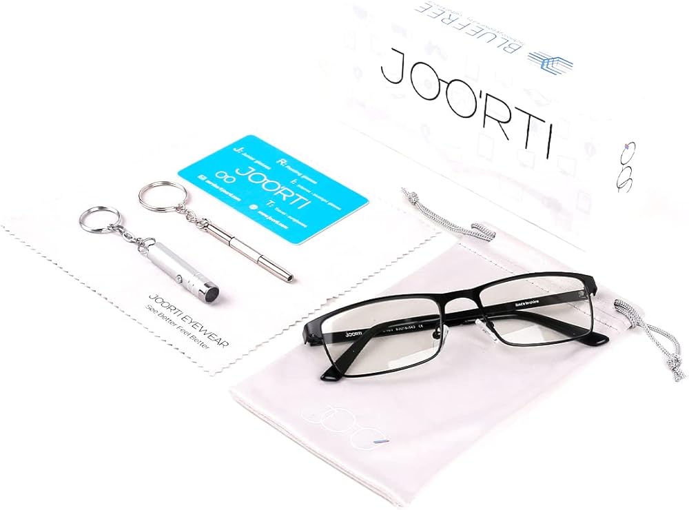 تقلل من إجهاد العين والرأس: نظارات JOO'RTI الزرقاء الخفيفة تحمي عينيك من الأشعة فوق البنفسجية المباشرة، وتجعلك أكثر أمانًا عند القيادة وأكثر راحة عند لعب ألعاب الكمبيوتر ولعب الهواتف المحمولة.