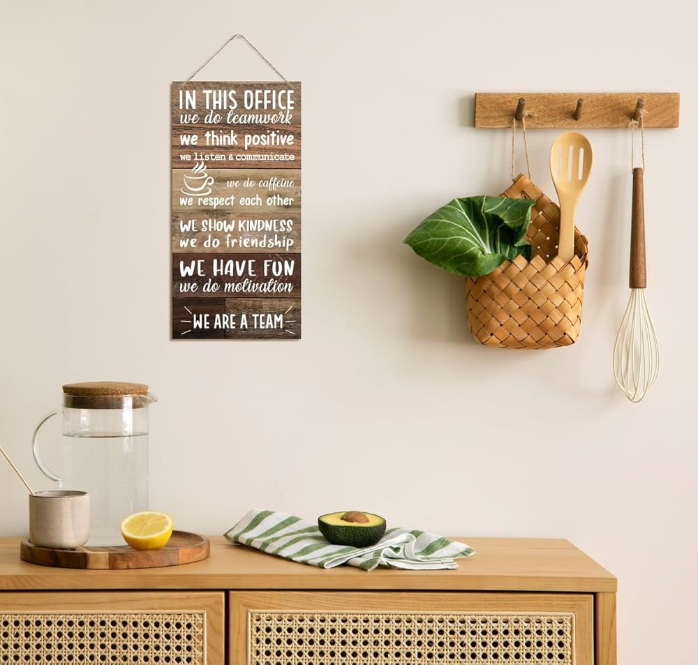 لافتات ديكور المكتب، علامة حائط ملهمة، لوحة خشبية معلقة للديكور، زخرفة خشبية لمكتب الموارد البشرية، قواعد المكتب، هدية زميل العمل، هدية صاحب العمل، نحن علامة فريق