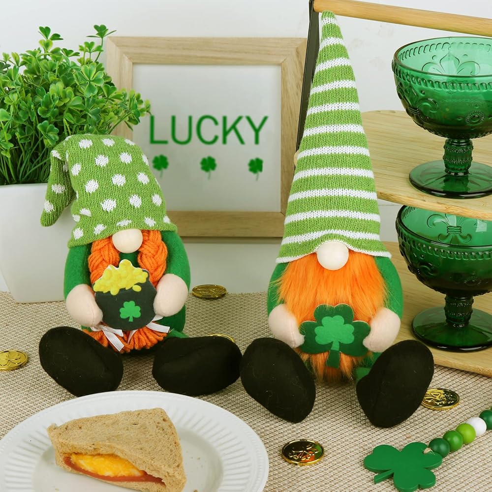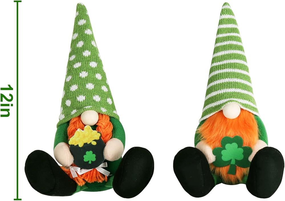 SUITABLE SIZE: 12 x 4.7 x 5 inches polka dot hat gnome - 12.6 x 4.7 x 5 inches striped pattern hat gnome. Appropriate size is suitable for St Patricks Day table decor, Tiered Tray, desk, window, shelf, mantel, cabinet, or other places. Unique St Patricks Day decorations for the home table party celebration, creating great touch on St Patricks Day.