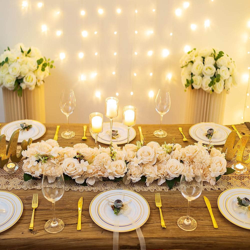 • فاخرة وفاخرة: لوحة زهور صناعية ذات لمسة حقيقية مصنوعة من الحرير. إنها تبدو مثل الزهور الواقعية مع الورود السميكة والمورقة الجميلة وكرات الأقحوان والأضاليا وأزهار الكرز والمساحات الخضراء. تمنحك قطع الزهور المركزية للطاولات ذات النباتات المتعددة المزيد من المشاعر الفاخرة وتجربة فاخرة مع كثافة الزهور العالية.