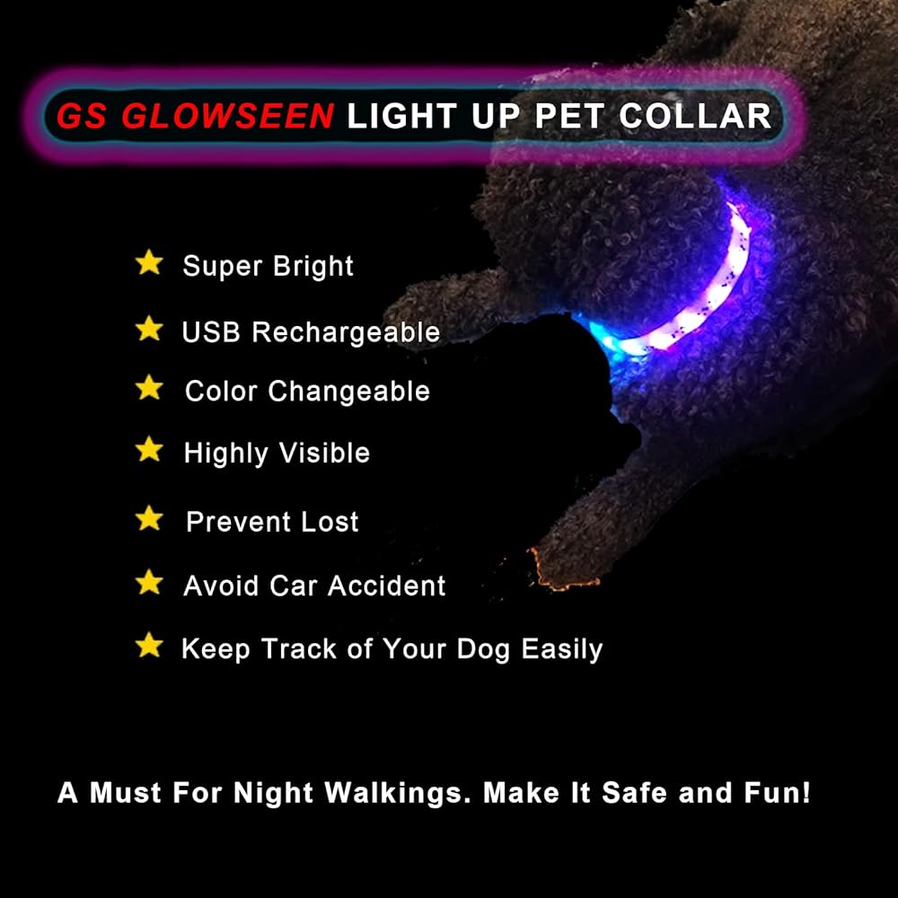 【رؤية عالية في الليل】يساعدك طوق GS Glowseen المتوهج للكلاب المزود بـ 28 خرزة مصباح، على تتبع كلبك الأليف بسهولة في الفناء الخلفي أو في رحلة تخييم! كما أن طوق الكلب ذو الوميض اللامع يعد أفضل لجذب انتباه السائقين في الليل