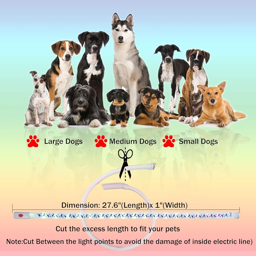 【مقاس واحد يناسب الجميع】يبلغ طول الياقة المضيئة 29 بوصة/73.6 سم. يمكنك تعديل الحزام بسهولة ليناسب كلبك الأليف. يمكنها أيضًا مرافقة كلبك من الجرو إلى مرحلة البلوغ. بالإضافة إلى أنه يمكن تشذيبها بسهولة من كلا الطرفين لجعلها مناسبة للسلالات الصغيرة الحجم المطلوبة والتي لا تنمو بشكل كبير