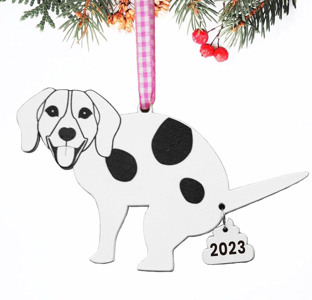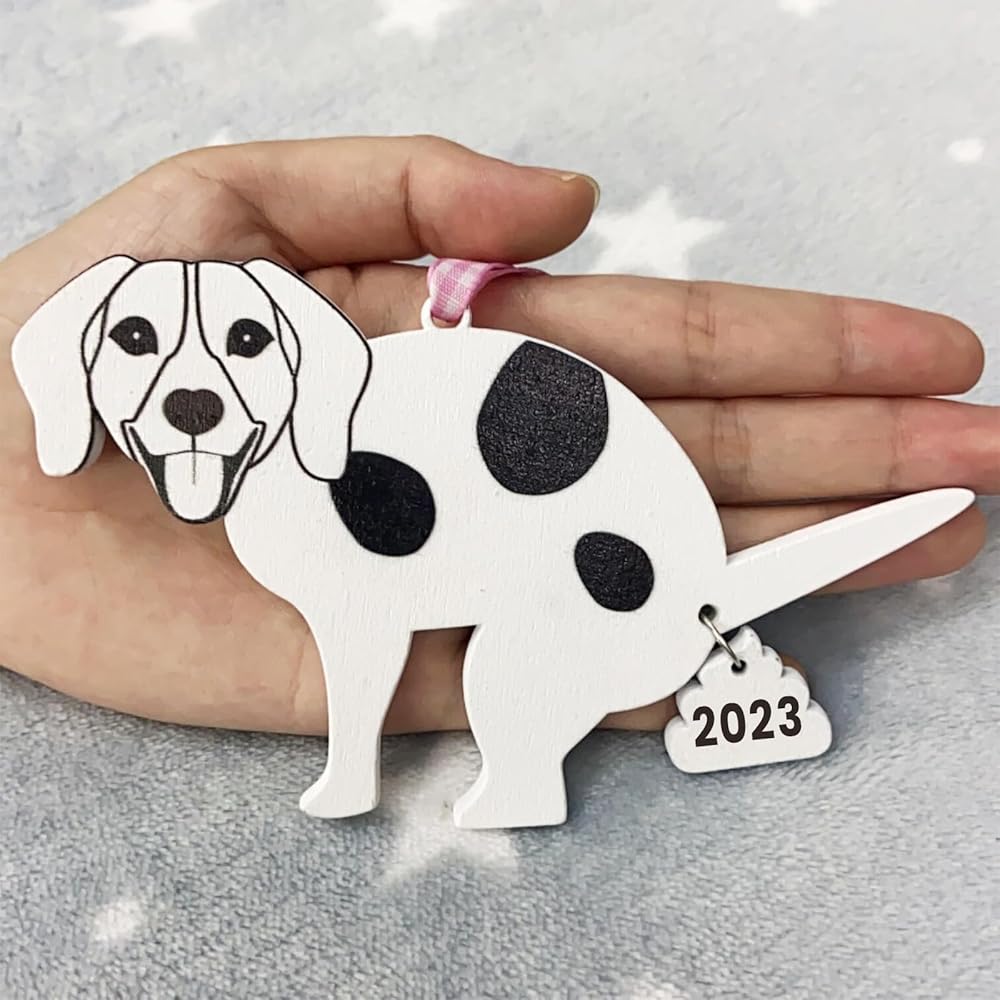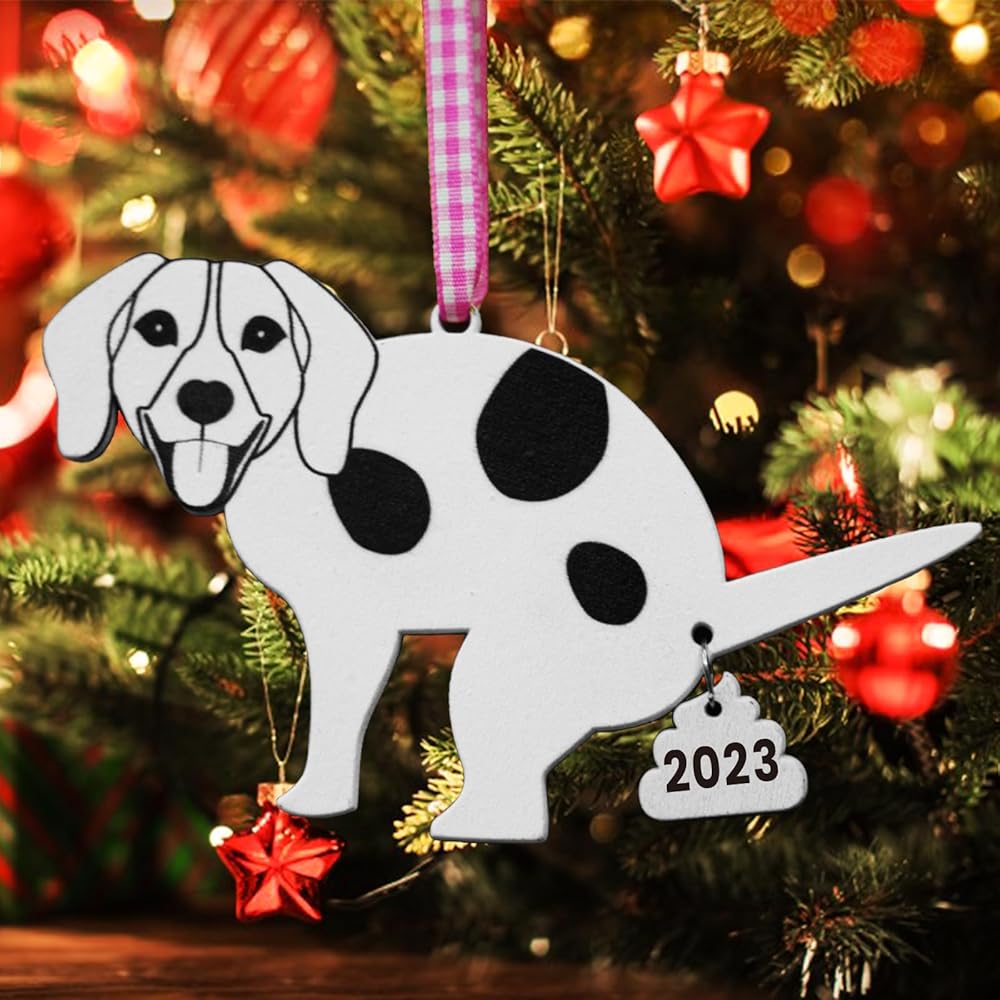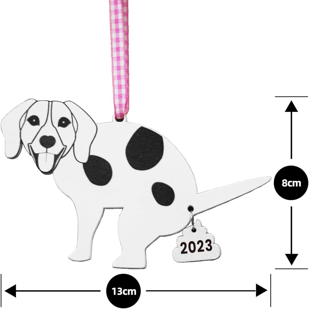 زينة الكريسماس 2021 - زينة كلب لشجرة الكريسماس - براز كلب خشبي مضحك معلق هدايا زينة للديكور الداخلي للمنزل والعطلات