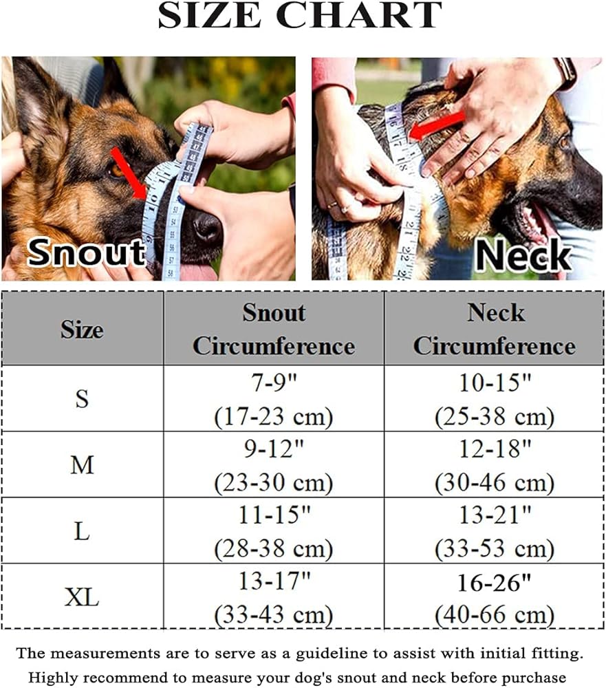• اختر المقاس المناسب: يرجى قياس محيط أنف ورقبة كلبك قبل الشراء، ويمكنك الرجوع إلى دليل المقاسات الخاص بنا من الصورة والوصف. كما نقدم أيضًا تعليمات حول تدريب الكلب على قبول الكمامة وكيفية ضبطها لتناسبها بشكل مريح. كمامة الكلاب الصغيرة والمتوسطة والكبيرة الخاصة بنا للكلاب الصغيرة والمتوسطة والكبيرة الحجم مثل Bull Terrier، German Shepherd، Australia Shepherd، Golden Retriever، Husky، Border Collie، Doberman.