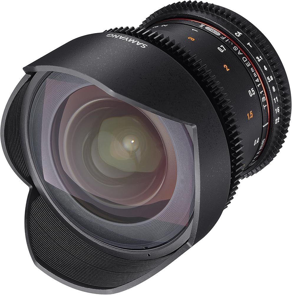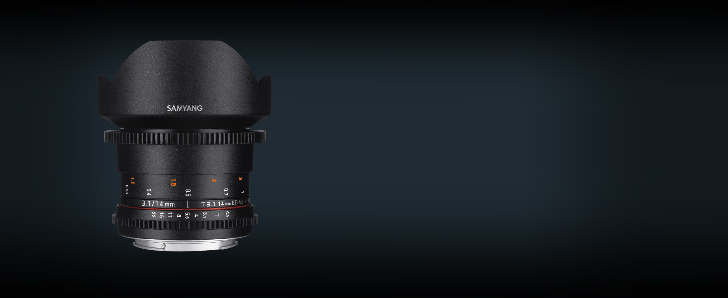 عدسة ساميانغ VDSLR II الجديدة 14 مم 3.1 زاوية عريضة للغاية هي واحدة من الجيل الثاني من عدسات سينمائية تحت خط VDSLR II الخاص به. مجموعة Samyang VDSLR II لها 3 مزايا أساسية: 1) جميع التروس موحدة بين جميع عدسات Samyang VDSLR II. تم محاذاة تروس التركيز والفتحة بدقة حتى لا يحتاج المستخدم إلى إعادة ضبط تركيز تتبع العدسة عند تبديل العدسات. 2) تتميز عدسات VDSLR II الجديدة الآن بميزان تركيز مزدوج، واحد على كل جانب. 3) جميع عدسات في دي اس ال ار II مطابقة اللون لتوفير نفس اللون والتباين في إنتاج الفيديو.