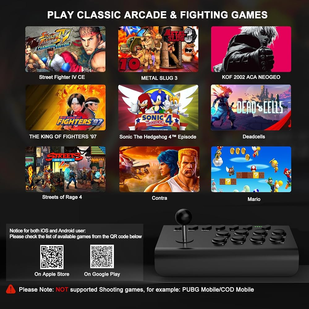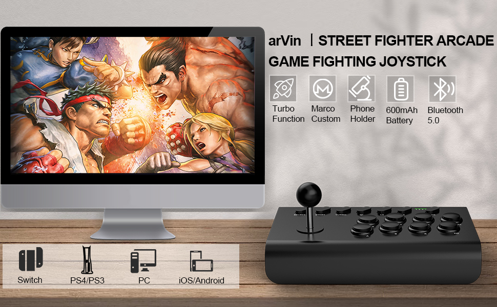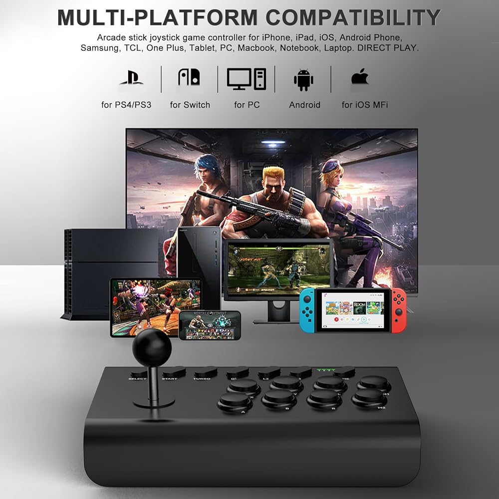 🕹️🕹️ 【متوافق مع منصات متعددة】وحدة تحكم ArVin arcade الهزازة لهاتف iPhone 15/14/13/12/11/X/8/7/6؛ لهاتف Samsung Galaxy وOne Plus وHuawei وTCL ومعظم هواتف Android؛ عصي القتال لأجهزة الكمبيوتر الشخصية ماك بوك، والكمبيوتر المحمول، والكمبيوتر المحمول؛ عصا سويتش أركيد لجهاز نينتندو سويتش/سويتش لايت/سويتش أوليد، ستريت فايتر لوحدة تحكم بلاي ستيشن 4/بلاي ستيشن 3 (متوافقة مع وحدة تحكم بلاي ستيشن 5، ولكنها تدعم فقط تشغيل ألعاب بلاي ستيشن 4 على وحدة تحكم بلاي ستيشن 5.) ليس لسلسلة إكس بوكس ون وإكس بوكس.