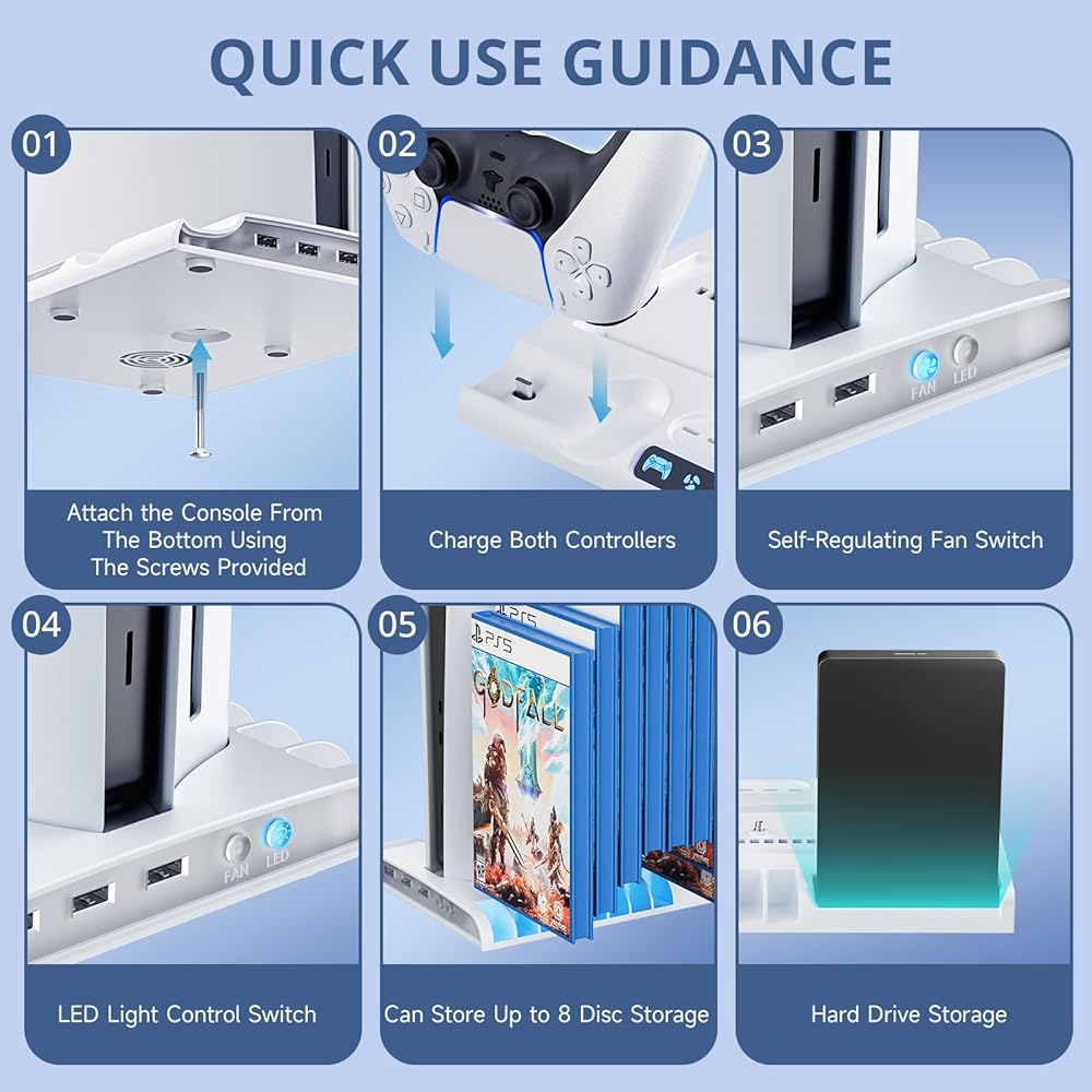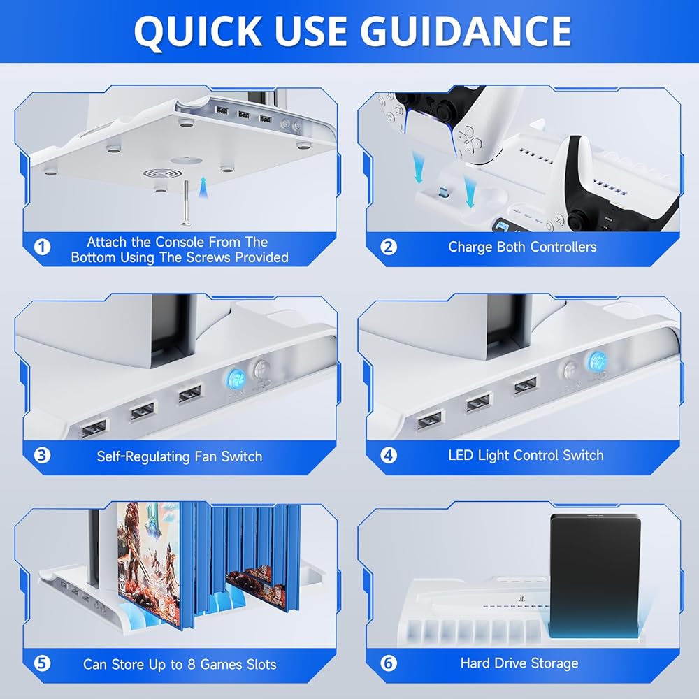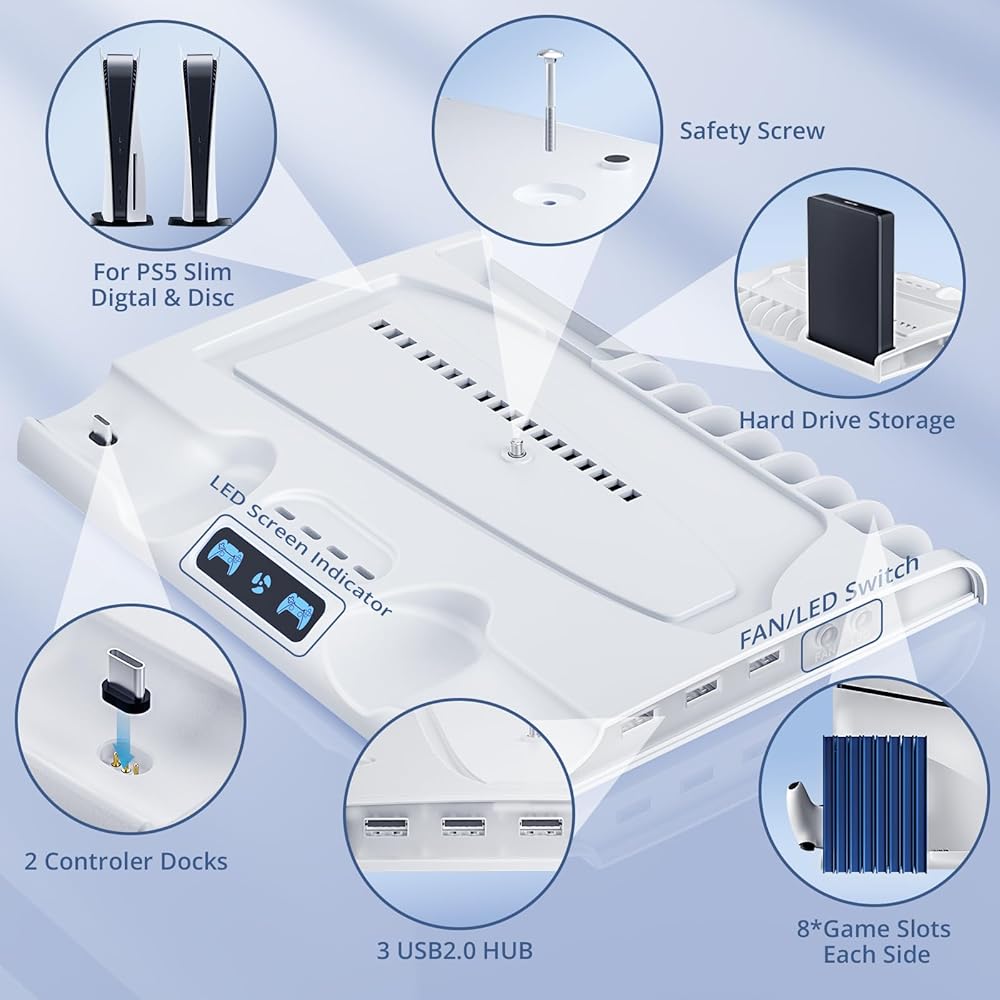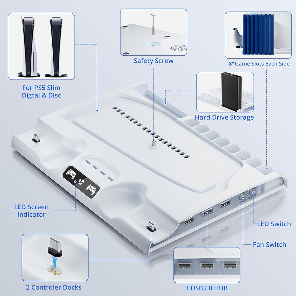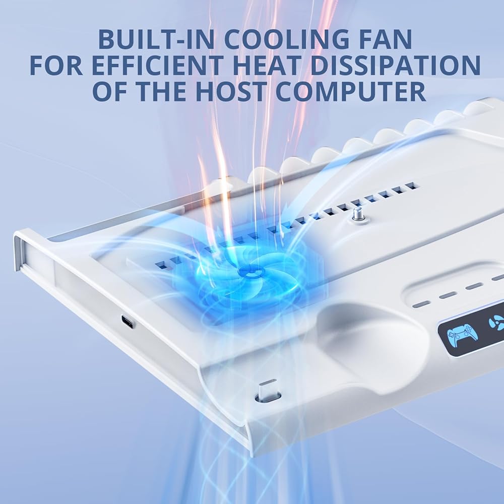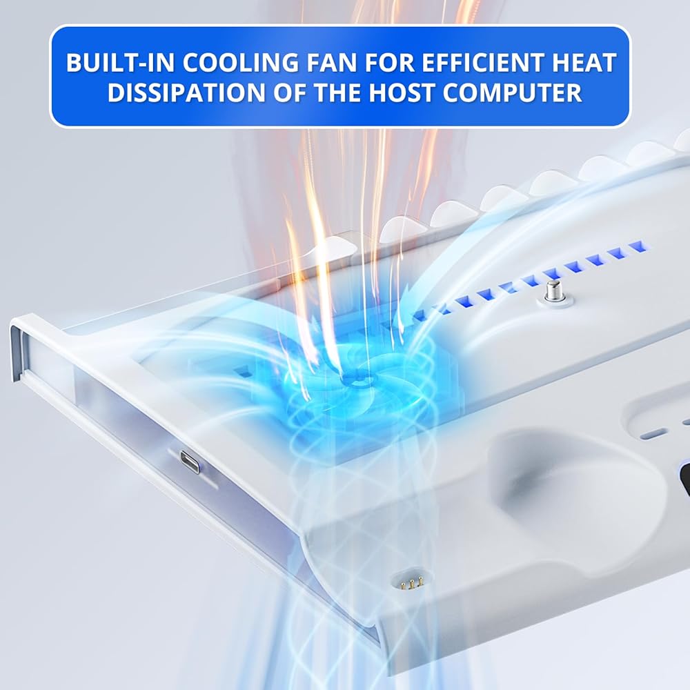 【نظام تبريد فعال】: يمكن لمراوح التبريد إيقاف تشغيل وحدة التحكم ps5 النحيفة بكفاءة. فتحات مشعة وقاعدة معدنية تحافظ على برودة وحدة التحكم الخاصة بك خلال جلسات الألعاب الممتدة. يتم الشحن مع تبديد الحرارة بشكل فعال للاستمتاع بألعاب أكثر سلاسة.