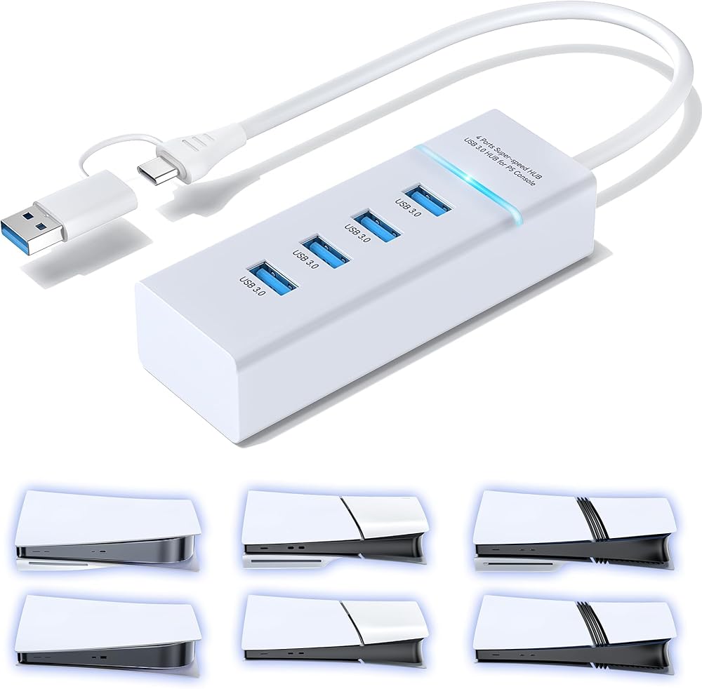 موزع USB لجهاز PS5، موزع USB 3.0 ذو 4 منافذ، محور شحن USB عالي السرعة لوحدة التحكم PS5 النحيفة، موسع منفذ USB PS5، محور USB C إلى USB 3.0 مع كابل ممتد بطول 0.66 قدم