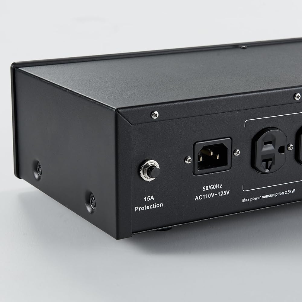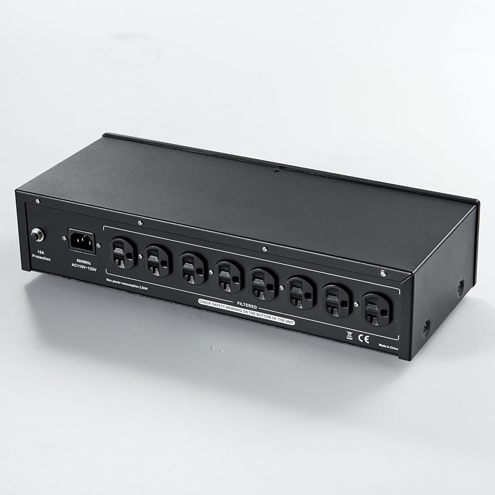 • حماية من الجهد الزائد 15 أمبير: مع حماية من الجهد الزائد 15 أمبير، يمكن لفلتر طاقة الضوضاء هذا أن يحمي بشكل فعال معدات الصوت والفيديو القيمة الخاصة بك ضد تقلبات الجهد الكهربي والارتفاعات. يمكن أن تمنع الحماية من الجهد الزائد الضرر وتطيل عمر أجهزتك.