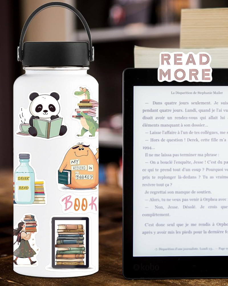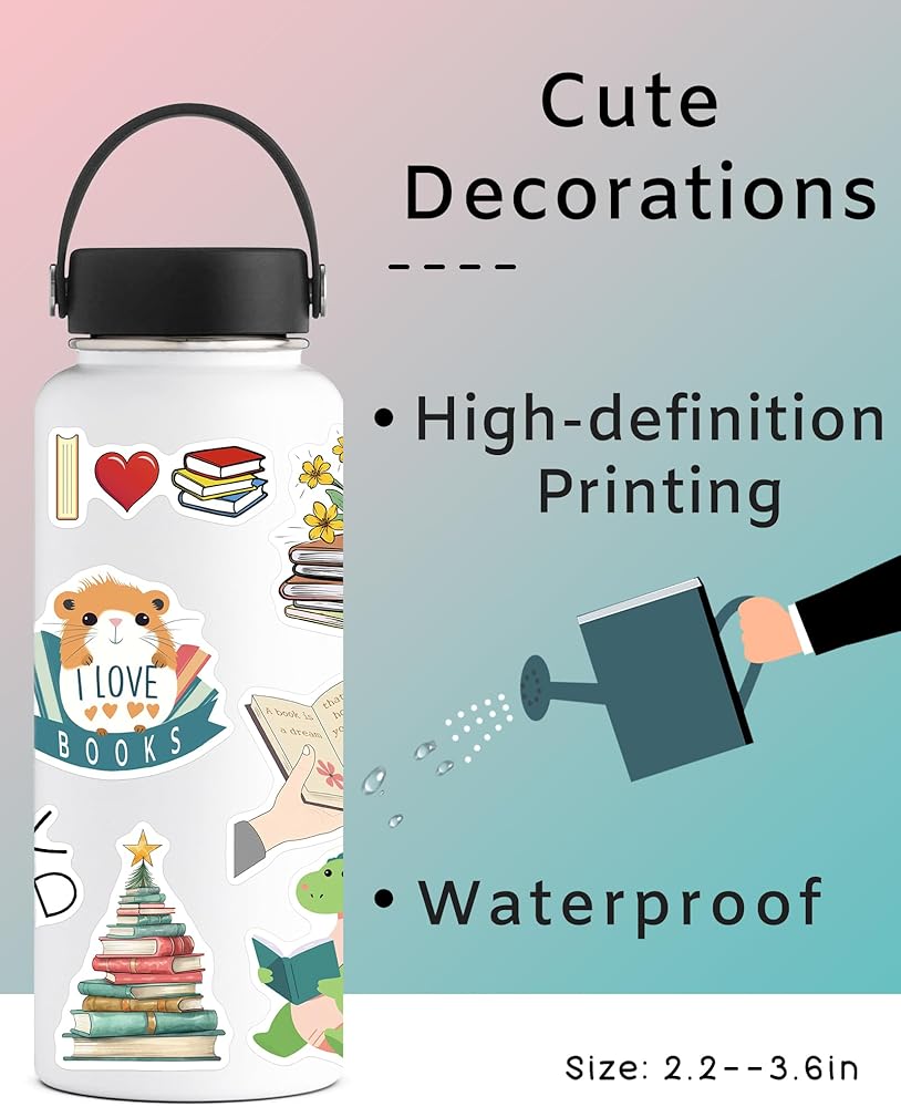 【Cute Decorations】: Bookish stickers are perfect for decorating various items, such as water bottles, laptops, tablets, books, scrapbooks, notebooks, bookshelves, pen holders, cups, guitars, phones, etc. Decorated items, gained a good mood.