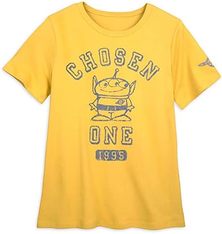 لقد انتهى الانتظار الطويل. ستكون "الشخص المختار" عند ارتداء هذا التيشيرت ذو المظهر العتيق مع فن Toy Story Alien وشارة Pizza Planet على الجهة الأمامية والأكمام.