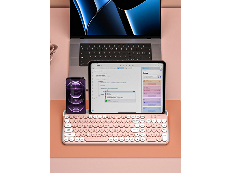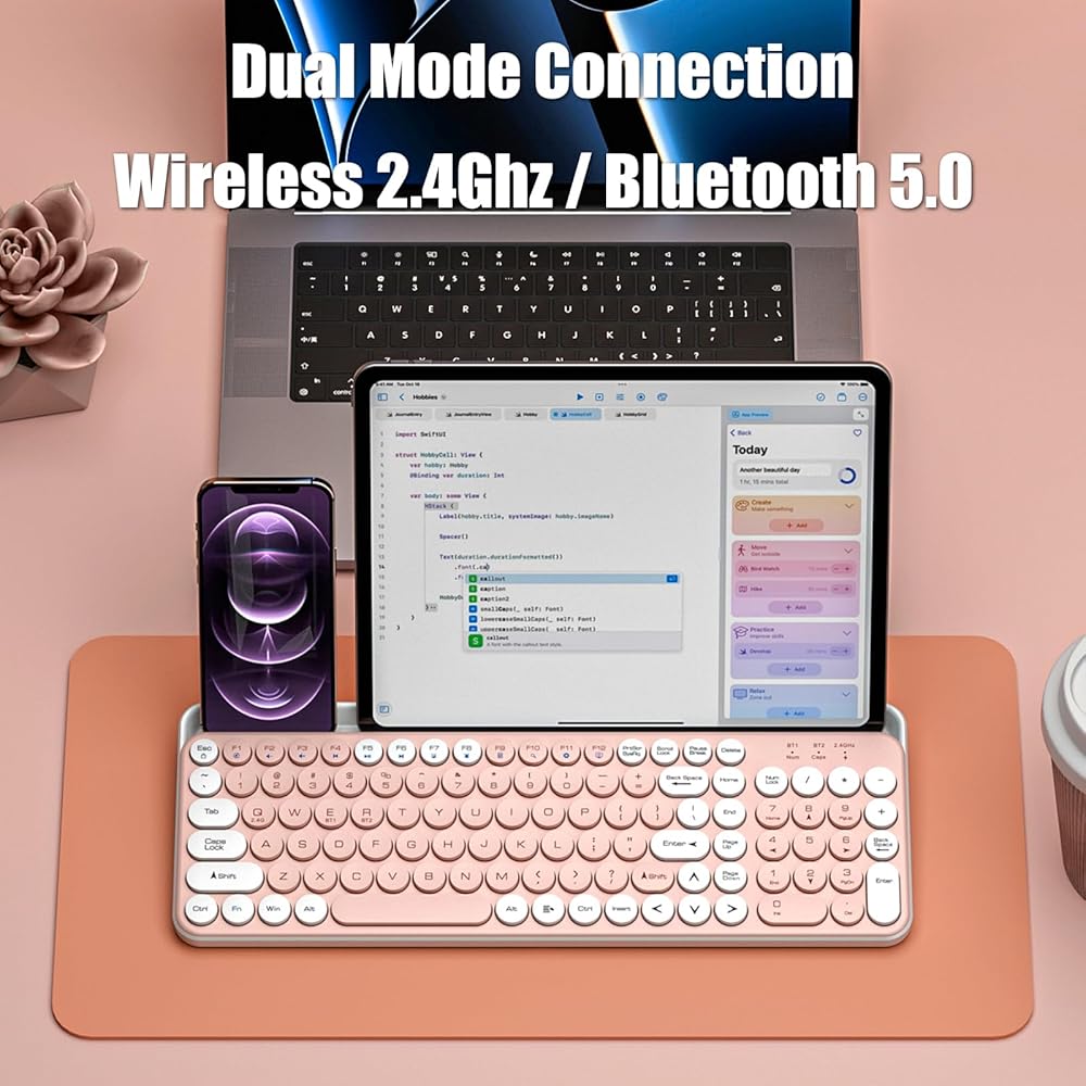 [اتصال الوضع المزدوج] - اتصال قوي ثنائي الوضع يدعم الاتصال اللاسلكي 2.4 جيجا هرتز والبلوتوث 5.0/3.0. يمكنك توصيل ما يصل إلى جهازين بلوتوث وجهاز واحد لاسلكي 2.4G. قم بتوصيل الأجهزة وتبديلها بسهولة باستخدام Fn+Q/E/R. متوافق مع أنظمة Windows، وMacOS، وiOS، وAndroid. يدعم أجهزة الكمبيوتر الشخصية والكمبيوتر المحمول وأجهزة iMac والهواتف الذكية وأجهزة iPad والتلفزيون الذكي والكمبيوتر اللوحي.