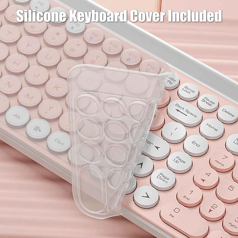 [لوحة مفاتيح بنمط آلة كاتبة جمالية قديمة] - لوحة مفاتيح الآلة الكاتبة هي مزيج من الطراز القديم والتصميم الحديث. أغطية المفاتيح الدائرية الملونة اللطيفة وتقنية الاتصال المتقدمة تجعل الكتابة أكثر راحة ومتعة. الصوت هادئ عند الضغط على الزر برفق. ويأتي مع غطاء لوحة مفاتيح من السيليكون المقاوم للغبار والسوائل.