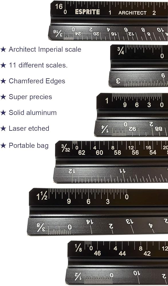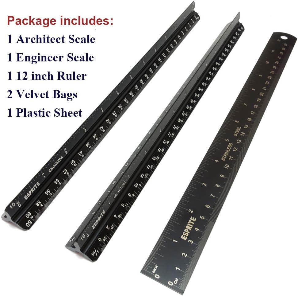 ✔ ميزان معماري واحد - 11 مقياس مختلف. 1-1/2 بوصة، 1، 3/4 بوصة، 3/8 بوصة، 3/16 بوصة، 3/32 بوصة، 1/2 بوصة، 1/4 بوصة، 1/8 بوصة، 3، 16. ✔ ميزان هندسي واحد - 6 مقاييس مختلفة. 1:10، 1:20، 1:30، 1:40، 1:50، 1:60. ✔ مسطرة سوداء مرنة من الستانلس ستيل مقاس 12 انش - مقياس إمبراطوري ومتري ✔ حقيبتان مخمليتان باللون الأسود يسهل حملهما وورقة غطاء حماية بلاستيكية ما هي محتويات مجموعة الميزان الاحترافية؟