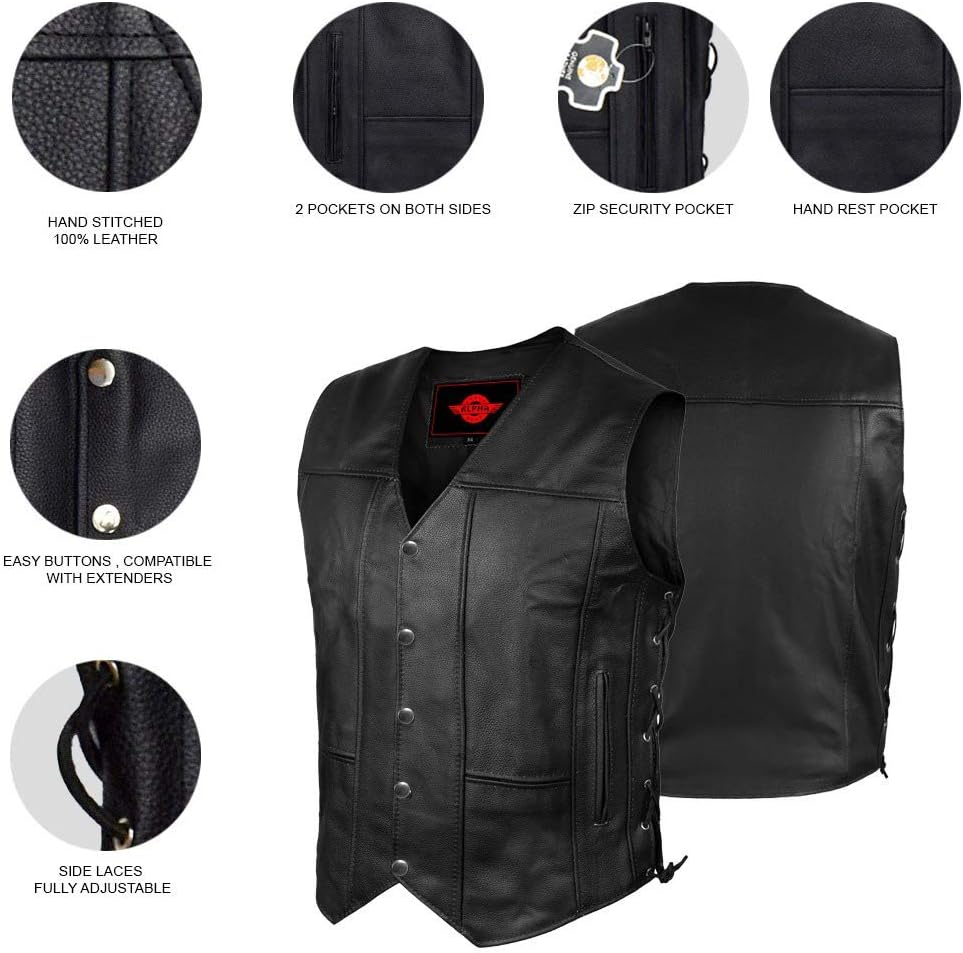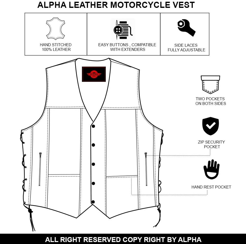 ✅سحابات-أزرار-أربطة أصلية | تتميز سترة راكبي الدراجات النارية هذه بسحابات YKK الأصلية من أجل المتانة، وتتميز سترة Alpha Biker للرجال بأعلى جودة من الفولاذ المقاوم للصدأ وأزرار سهلة الارتداء، وتأتي السترة الجلدية للدراجات النارية الخاصة بنا مع أربطة جلدية أصلية وسترة جلدية سوداء.