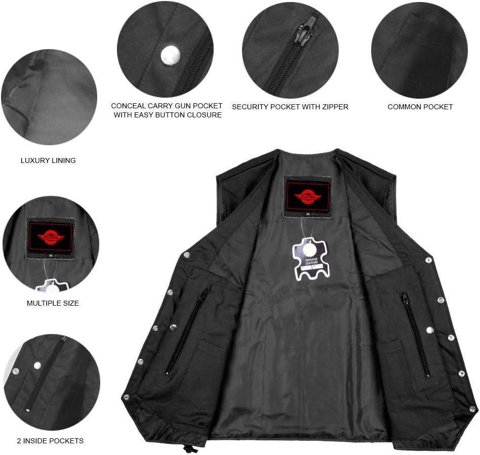✅6 جيوب مخفية للحمل | تحتوي السترة الجلدية على 4 جيوب خارجية وجيبين داخليين لإخفاء السترة الجلدية للرجال.