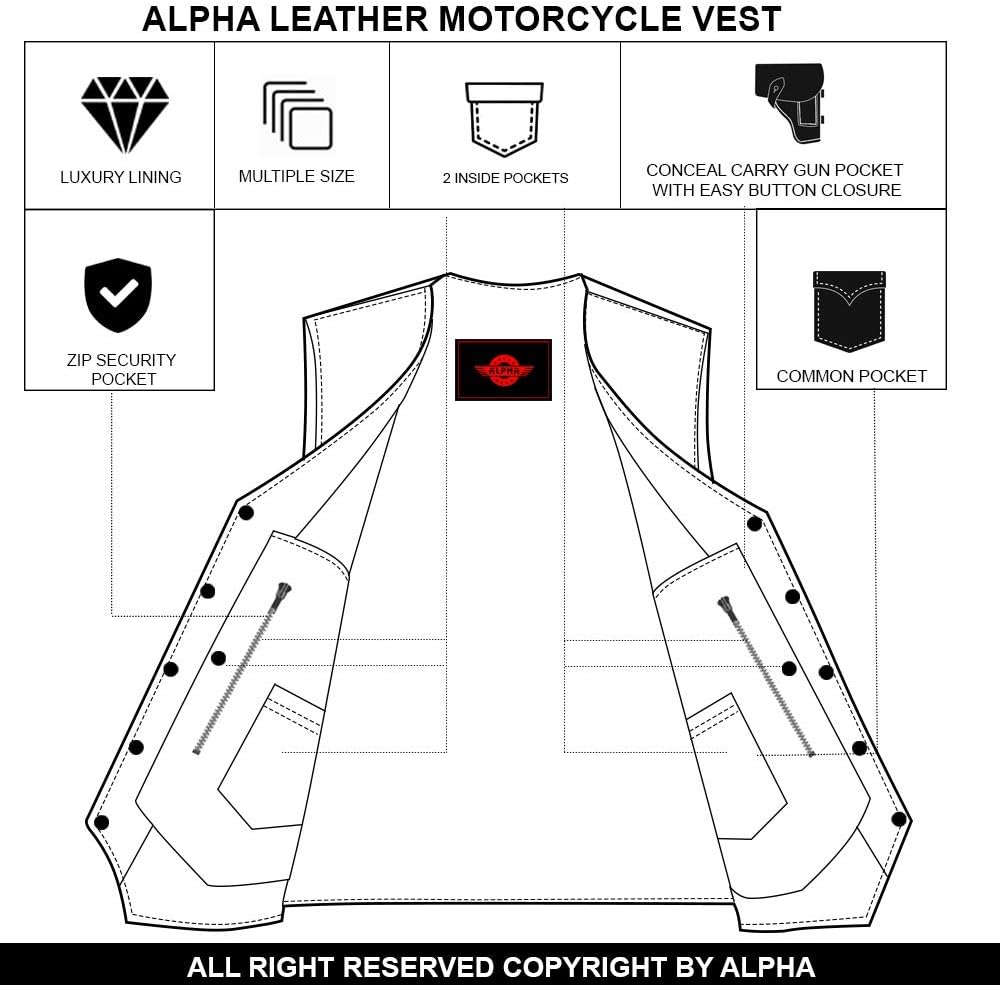 ✅مقاسات الولايات المتحدة الأمريكية المحسنة | تُعد السترة الجلدية السوداء الخاصة بنا خيارًا رائعًا لسترة MC Club، لقد قمنا بتحسين مقاسنا للسترة الجلدية للدراجات النارية الآن قم بقياس صدرك واختر المقاس الصحيح لسترة السائق الجلدية الخاصة بك.