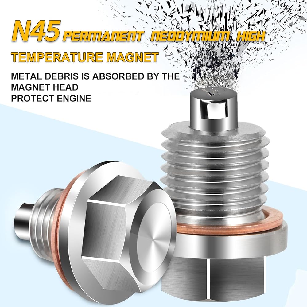 🚗【مغناطيس قوي】استخدام مغناطيس النيوديميوم الأرضي النادر N45 عالي القوة مع قوة مغناطيسية تصل إلى 5000 غاوس، نقطة قابس التصريف المغناطيسي هي التقاط واحتجاز أي جزيئات معدنية دقيقة في الزيت من ملابس المحرك، وحماية المحرك وهو كذلك. أداة ممتازة للمركبة.